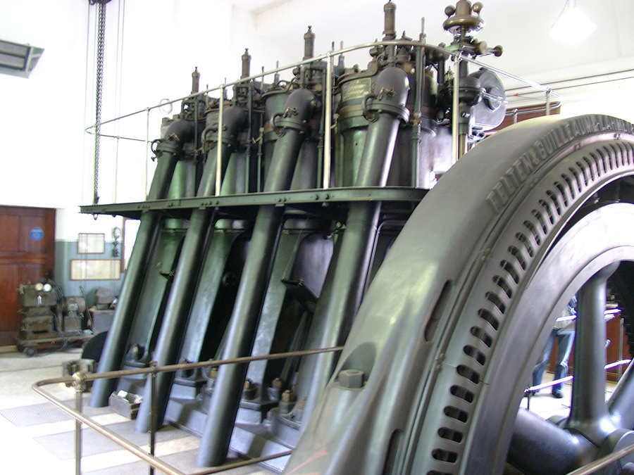 Größter Dieselmotor aus der Zeit vor dem Ersten Weltkrieg, der noch vollständig erhalten mit allem Zubehör an seinem ursprünglichen Aufstellort steht