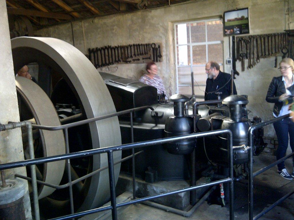 75 Liter Hubraum, 280 Umdrehungen, 120 PS, 2,6m Schwungrad,6100 Kg schwer!