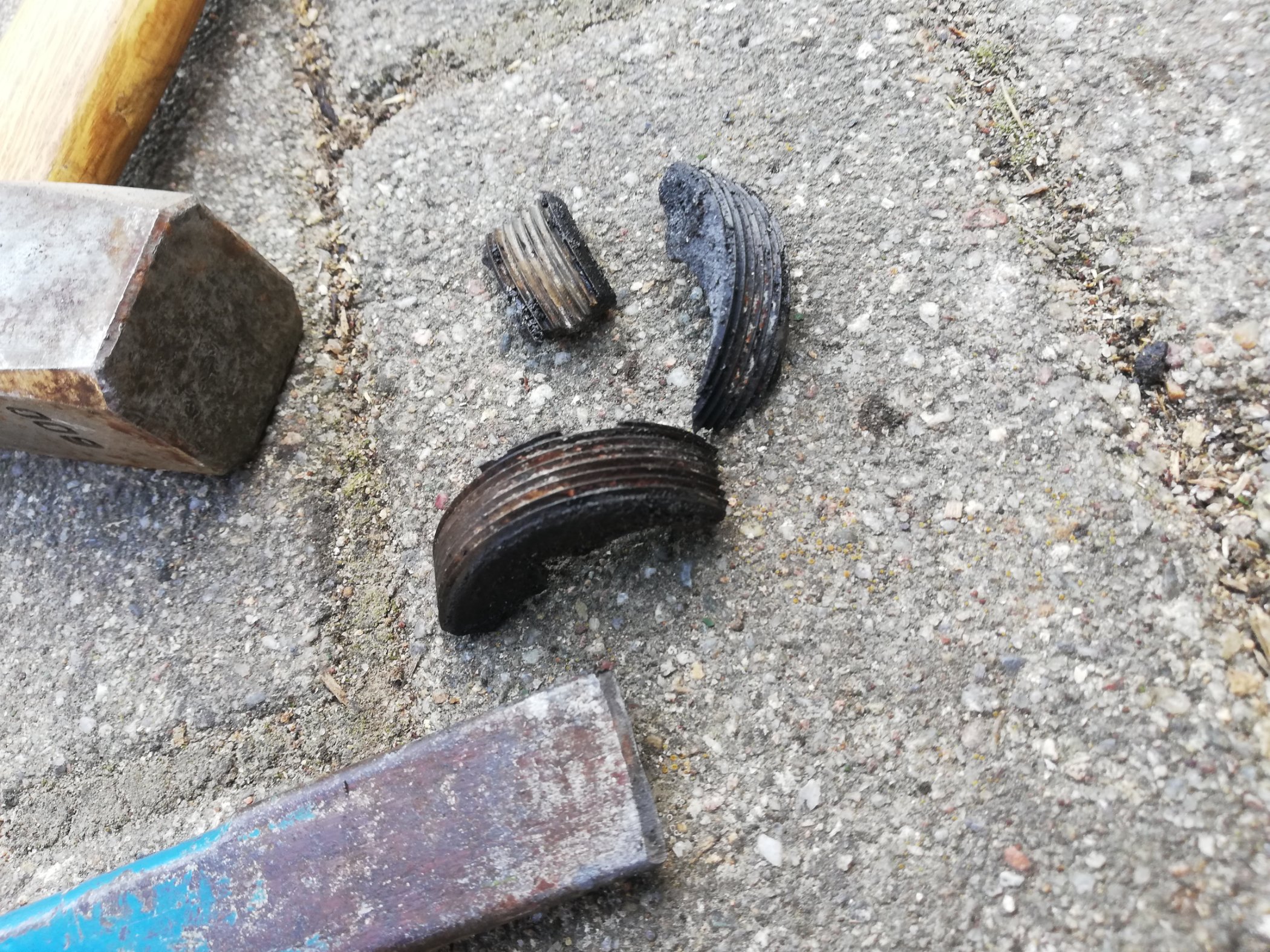 Jetzt kam das grosse Haare raufen: Hitze, Bohrungen, abgebrochene und verbogene Bohrer.... Hab dann nur noch so viel Rausgebohrt wie ging und den Meißel angesetzt...