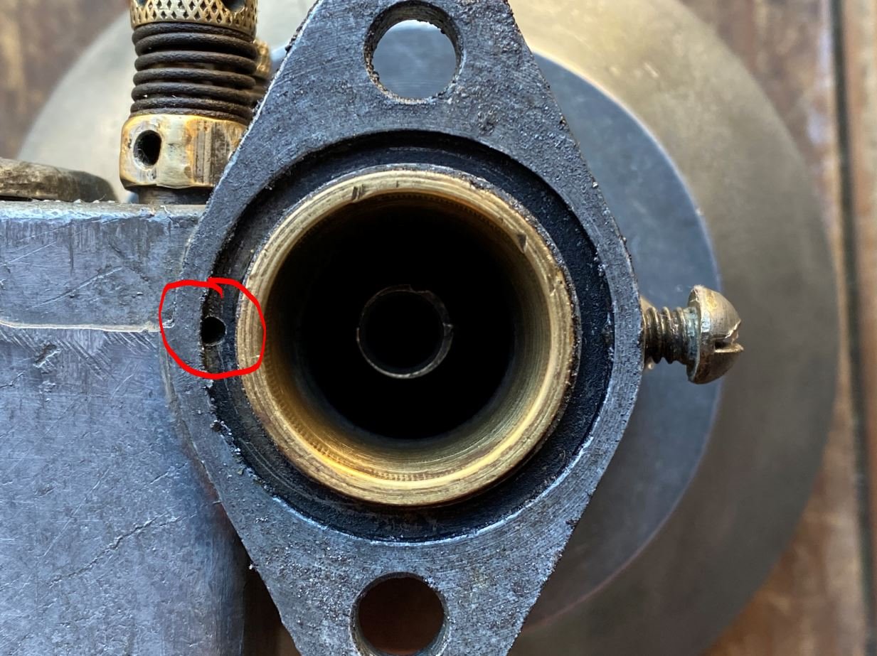 Im Kopf unter der Einlassöffnung und im Vergaser sind 2 Bohrungen.