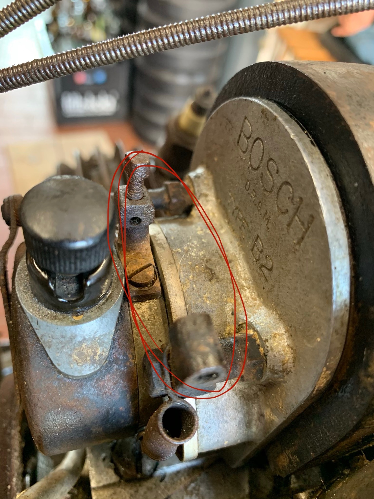 das zweite Bild bedeutet ja, dass es eine Fernverstellung für den Zündzeitpunkt gab ... zusammen mit der Hebelmimik auf dem Tank und dem ominösen Hebel unter der Starter bekomm ich das Gefühl das Ding sollte wärend eines Fahrbetriebs justiert werden.