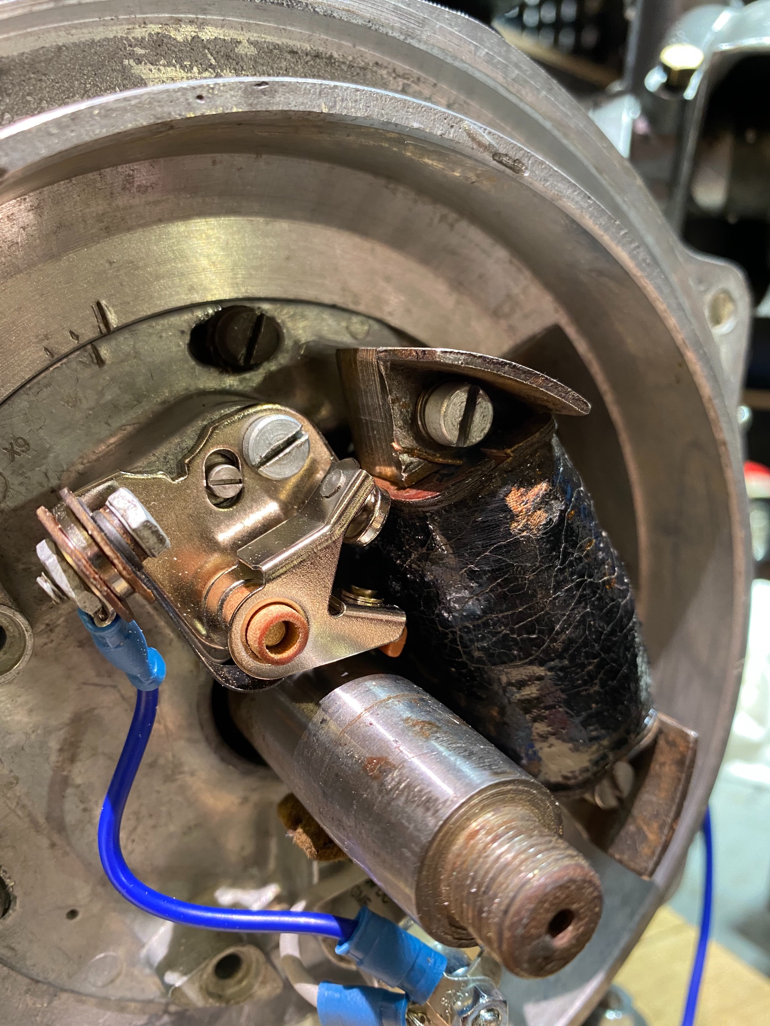 ich restauriere aktuell einen Stamo 4 aus 1940, bin auch soweit fertig, bis auf die Zündung. Ich hatte unter suchen hier im Forum diverse Teile gesucht, auch alle gefunden, heute kam der neue Unterbrecher. Wie man auf beigefügten Fotos sehen kann, berührt der Unterbrecher zu keinem Zeitpunkt die Kurbelwelle, was er müsste, wenn er öffnen soll, selbst bei niedrigster Einstellung ist er immer noch gut 4 mm von der Welle entfernt.