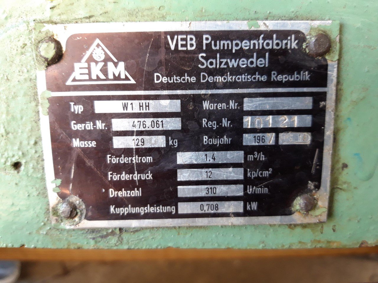 Mein Vater braucht Platz und verkauft deshalb seine große Wasserpumpe.