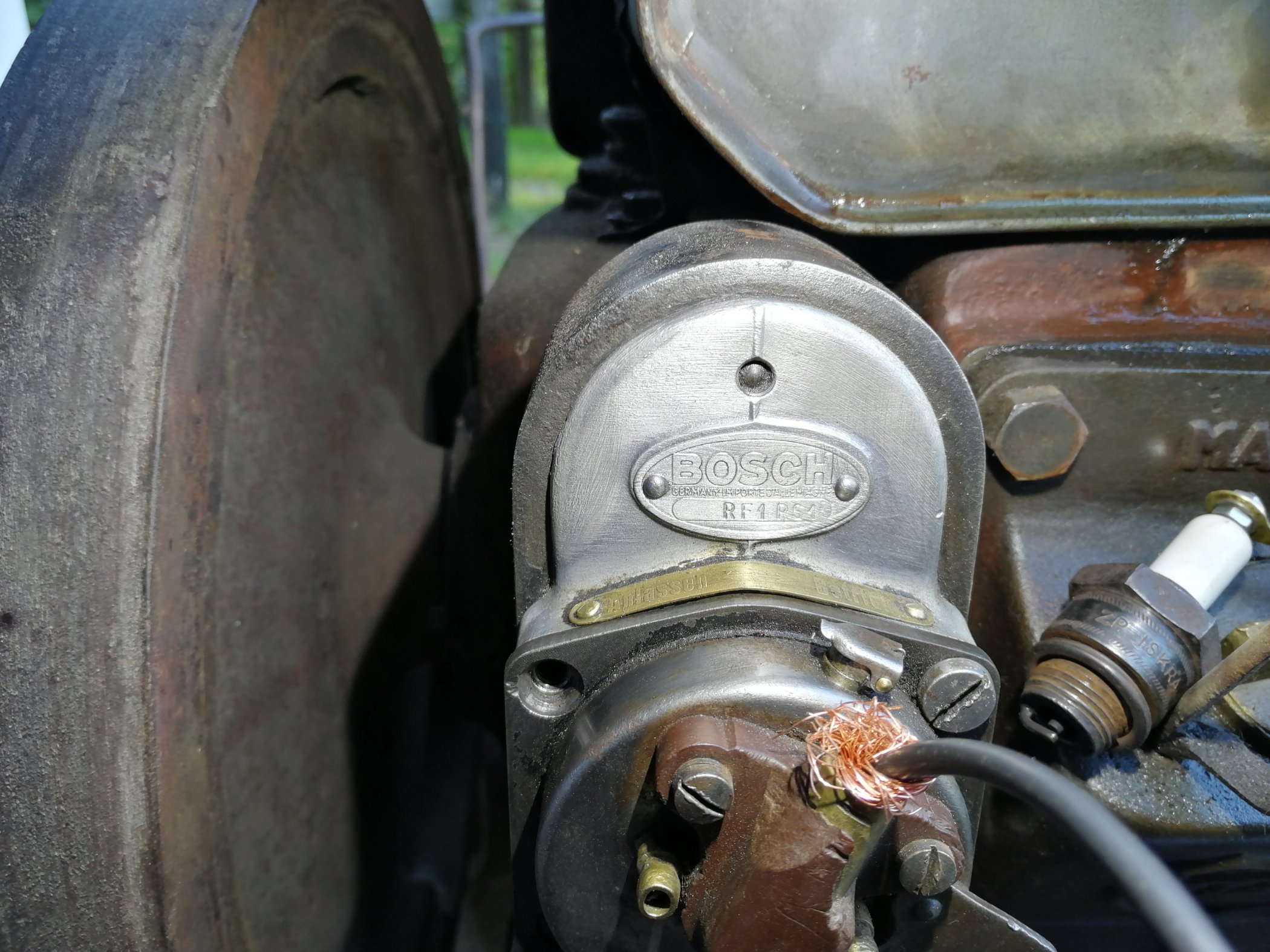 vor ein paar Wochen habe ich mir einen weitern Motor zugelegt. Es ist ein Deutz MA711 (Nr. 359711). Es ist der erste Benziner in meiner Sammlung. Der Magnetzünder war lose dabei. Laut dem Verkäufer wäre der Magnetzünder noch in Ordnung. Der Verkäufer war ein älterer Herr der den Motor jetzt aus altergründen abgegeben hat und den Motor wohl schon seit Jahren (Jahrzehnten?) in seinem Besitz hat. Also habe ich den Magnetzünder montiert und den Motor mal durchgedreht. Ein Zündfunke kommt aber nur in der Stellung "Betrieb". Sobald ich den Hebel auch nur etwas zurück Richtung "Anlassen" bewege ist kein Zündfunke mehr zu sehen. Ankurbeln lies sich der Motor so nicht. Also habe ich ihn über einen Flachriemen und der Riemenscheibe meines Traktors angeworfen. Und mit dem Hebel in Stellung "Betrieb" sprang der Motor auch an. Sobald man den Hebel bewegt geht er aber aus. Hier ein Foto von dem Magnetzünder: Ist das der richtige Magnetzünder für diesen Motor?