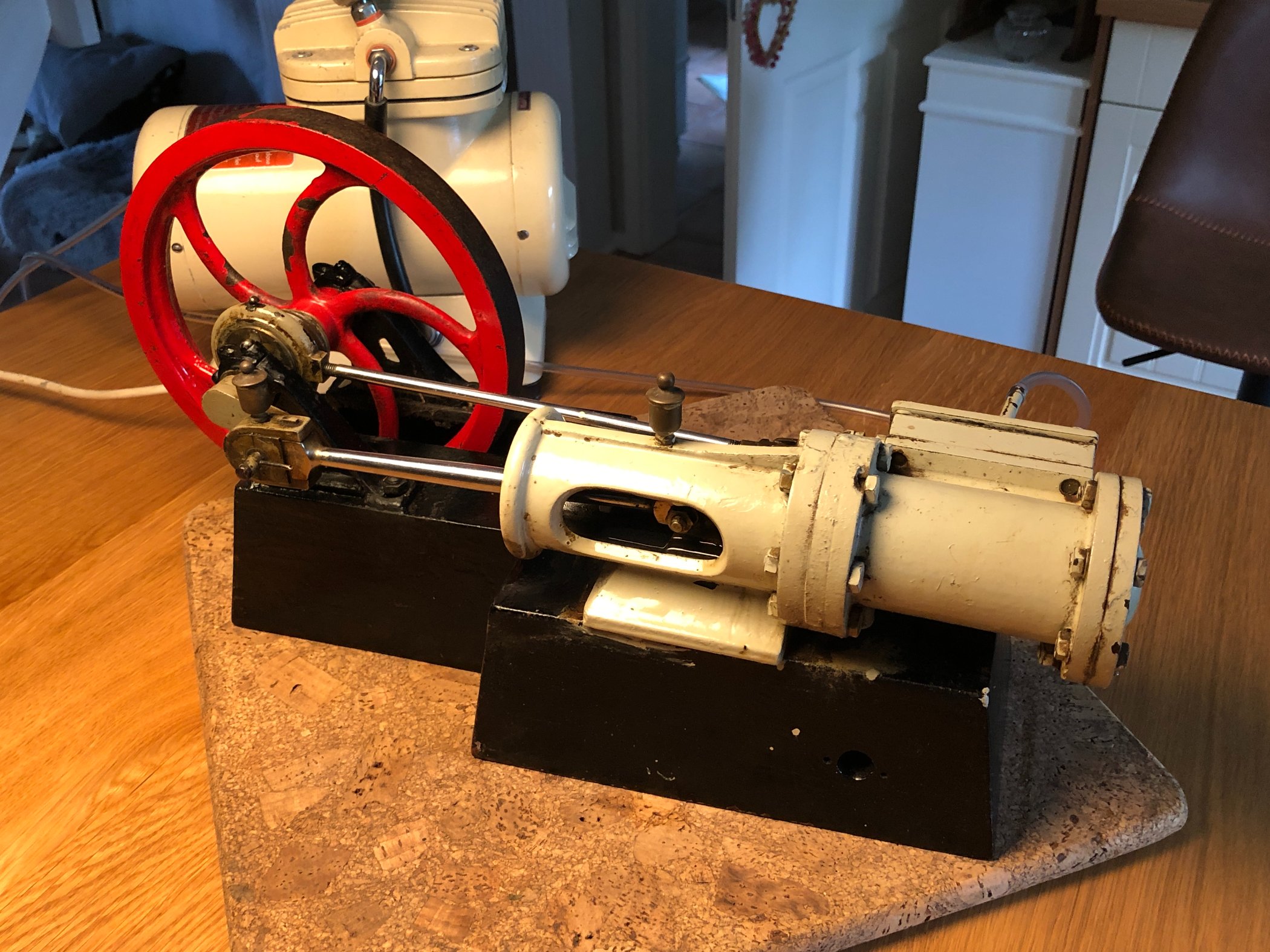 Ist das wirklich ein Vorführungsmodell ? Am Sockel sind einige Löcher und Anschlüsse, welche mich ein wenig zweifel lassen. Der Luftanschluss jedoch deutet auf ein Modell hin. Oder Reste einer Dampfleitung ?
