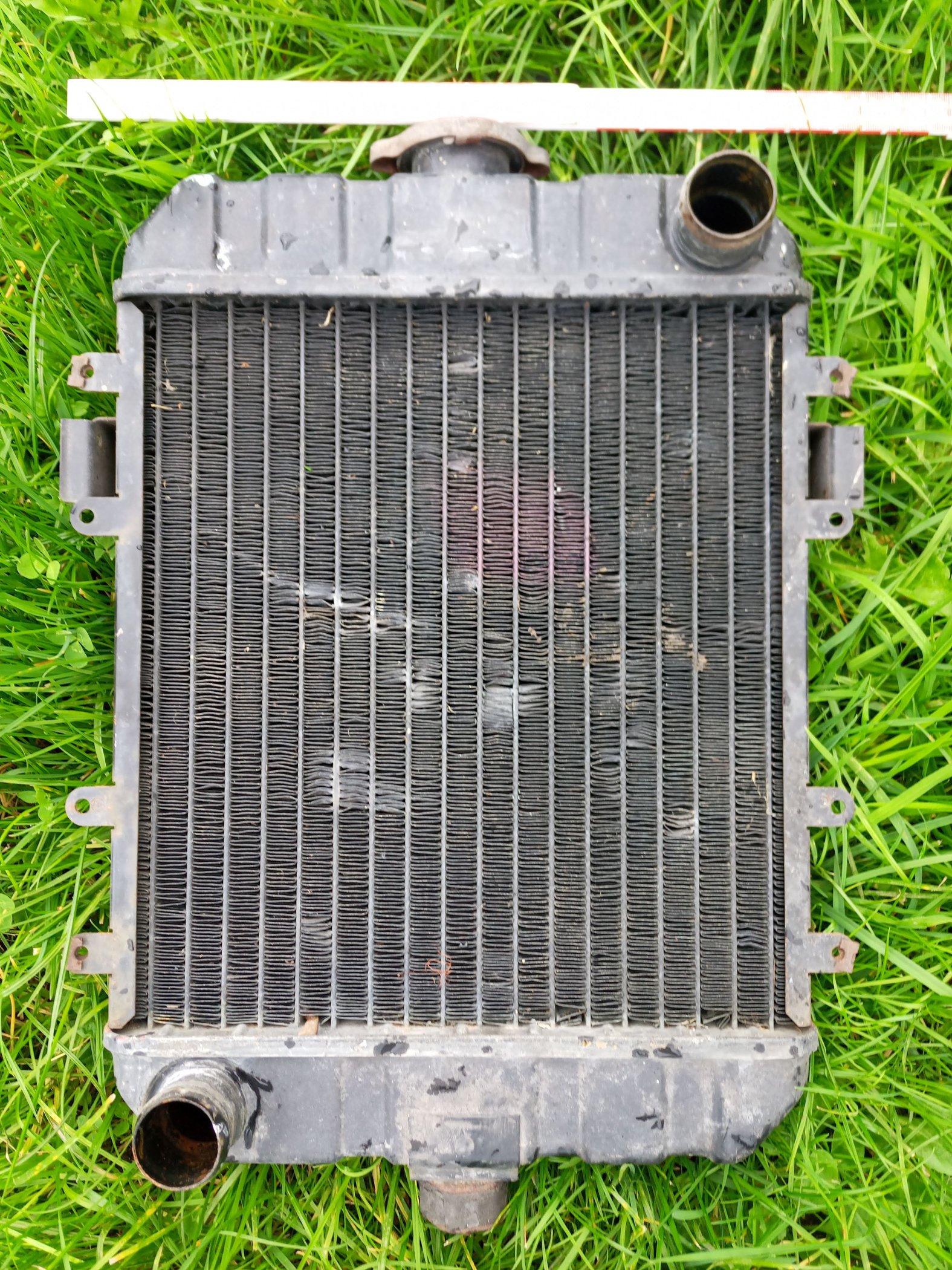 Maße ca. 35x45 cm über alles. Spenderfahrzeug ist unbekannt. Habe den Kühler mit Wasser gefüllt und er ist dicht, abgedrückt habe ich ihn nicht.