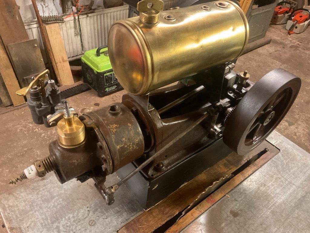 stelle hier für einen Bekannten ohne Internet ein paar Bilder eines kleinen unbekannten Motors ein. Das gute Stück lief auf einer Alm in den österreichischen Alpen. Damit sollen seinerzeit (frühes 20. Jhd.) wohl Akkus geladen worden sein. Tank und Vergaser sind nicht original.