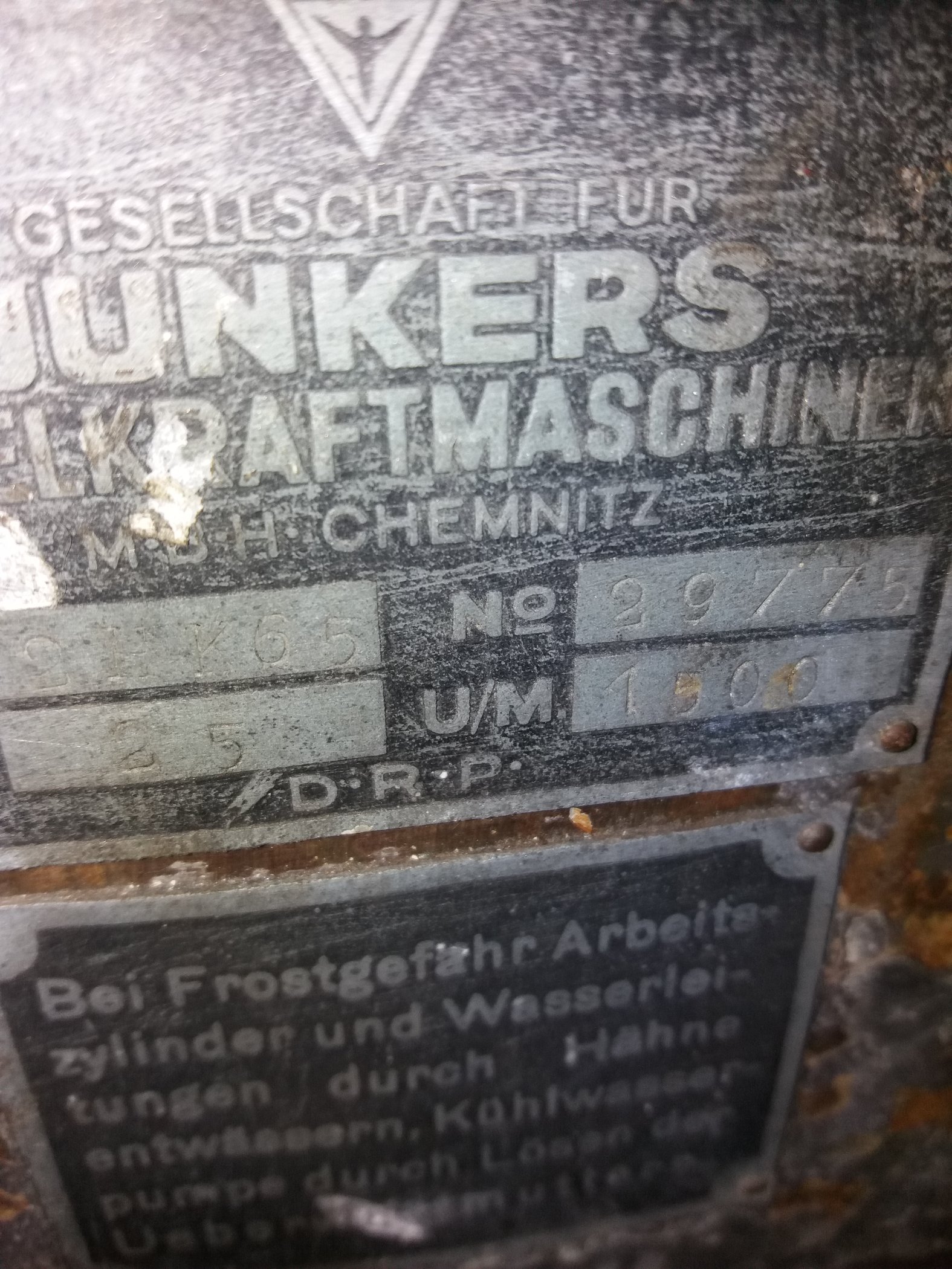 Gesellschaft für Junkers Dieselkraftmaschinen Chemnitz Typ 2HK65 Nr. 29980 ? (sehr schwer zu lesen). PSe 25 UM 1500