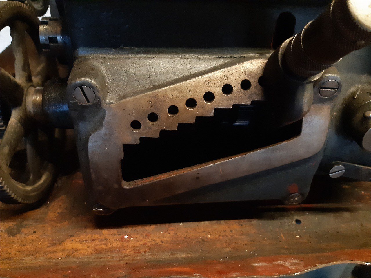 Das schöne ist aber, dass sich der Vorschub zum Gewindeschneiden einfach verzehnfacht, also in dem Fall im 9. Gang 1,5mm.