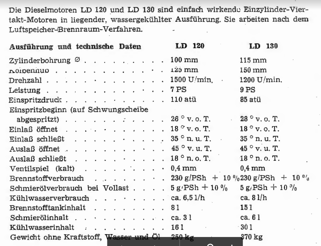 Ich habe 2 verschiedene Anleitungen für den 120 bzw. 130.In der einen steht der Einspritzdruck für den LD120 mit 110 atü und in der anderen mit 130 atü angegeben. Ich denke 20 atü ist aber schon ein ganz schöner Unterschied.