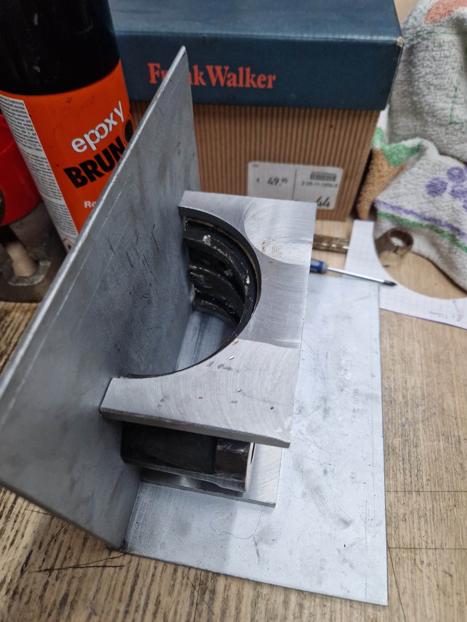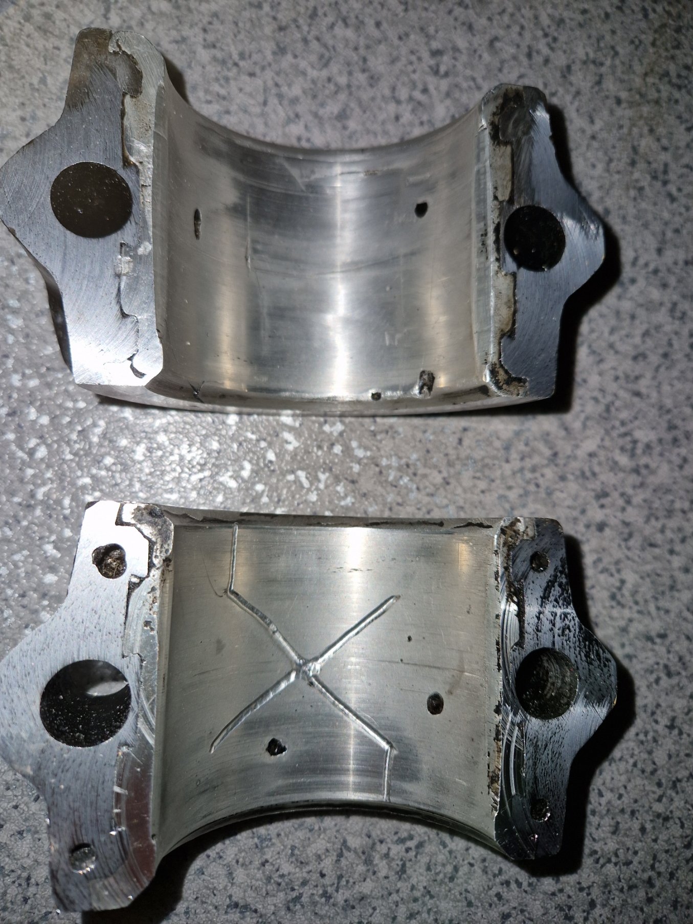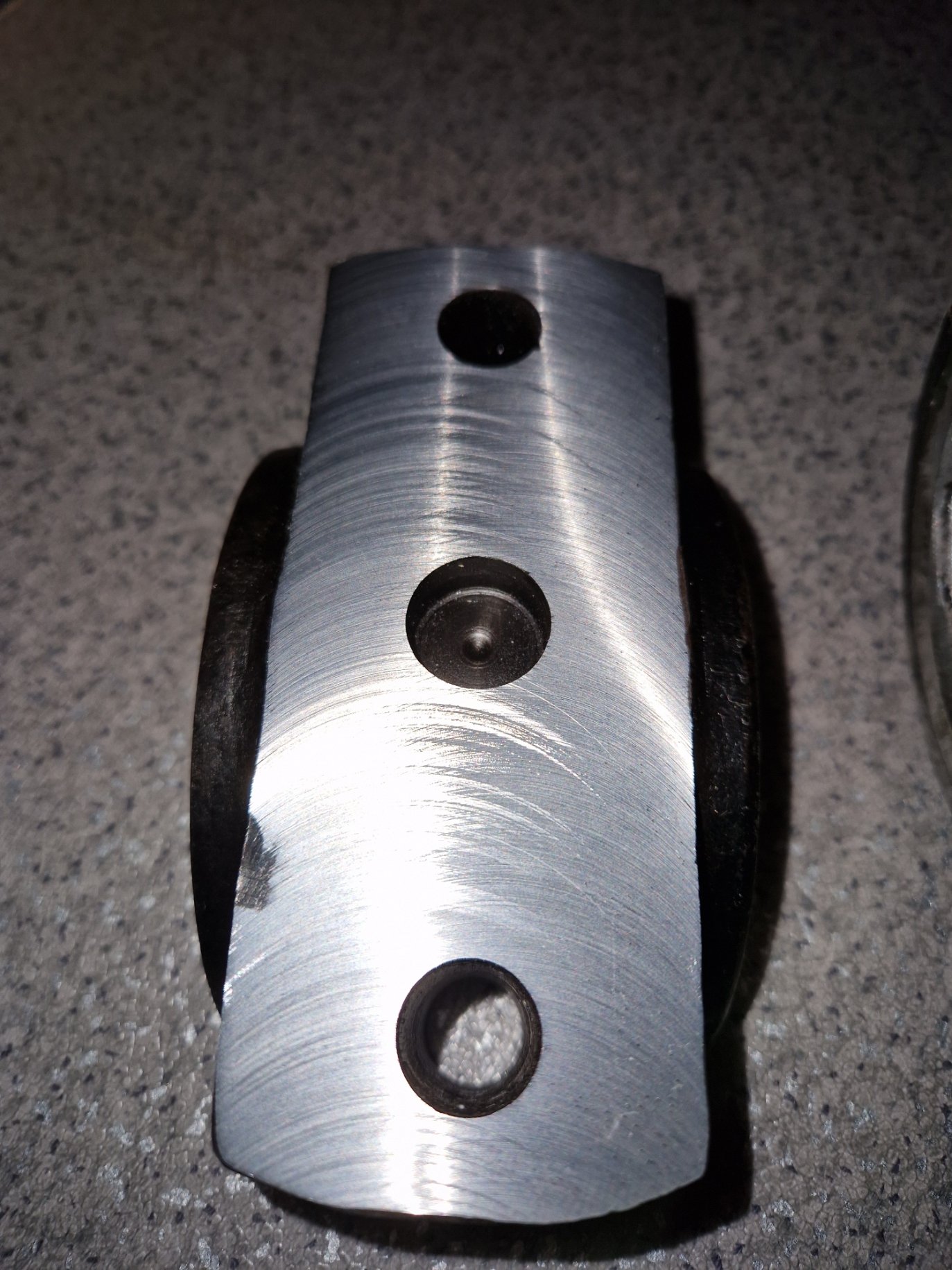 um beim ausspindeln die parallelität der achsen zwischen großem und kleinem pleulauge zu gewährleisten habe ich hauchzart referenzflächen plan gefräßt im 90°winkl zueinander die fürs spannen auf der fräse relevant werden um eben die parallelität der achsen bestmöglich sicherstellen zu können. das mess ich mir mit der mess uhr an den stellen wo ich drübergefräst habe dann schön aus bevor ich mit dem ausdrehwerkzeug reinfahr....so der plan