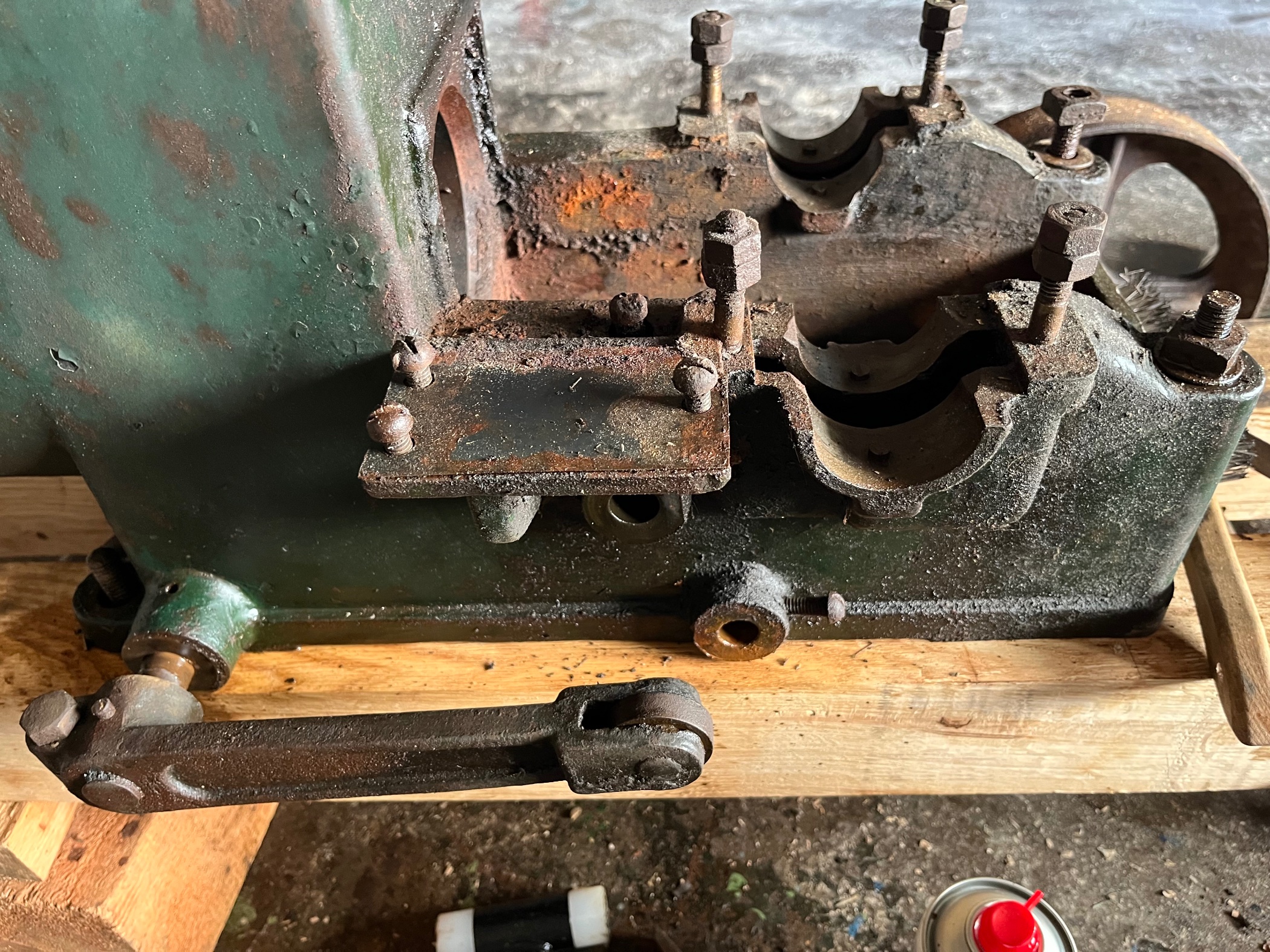 Der Motor ist leider fest. Eine Bestandsaufnahme wird demnächst stattfinden. Die Motor-Karre scheint noch die originale zu sein, Handgriffe dazu gibt es auch noch. Aber die Balken müssen definitiv ausgetauscht werden.