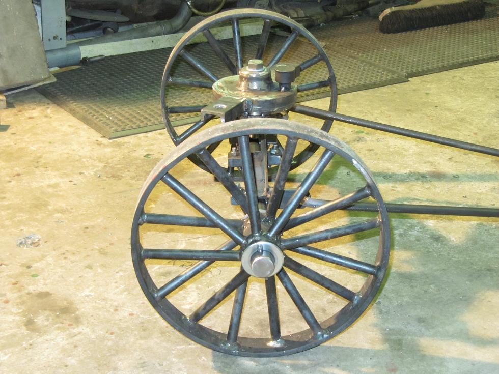 Geschschmack hättens auch 6 Speichen auf jeder Seite im Rad gemacht, die kleineren Vorderräder sehen etwas "überladen aus". Das ist keine Kritik nur meine Meinung. Rechteckige Achsen geben noch mehr Pfiff. Der Lenkschemel sieht gut aus,