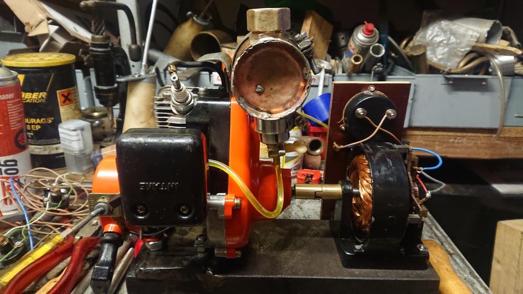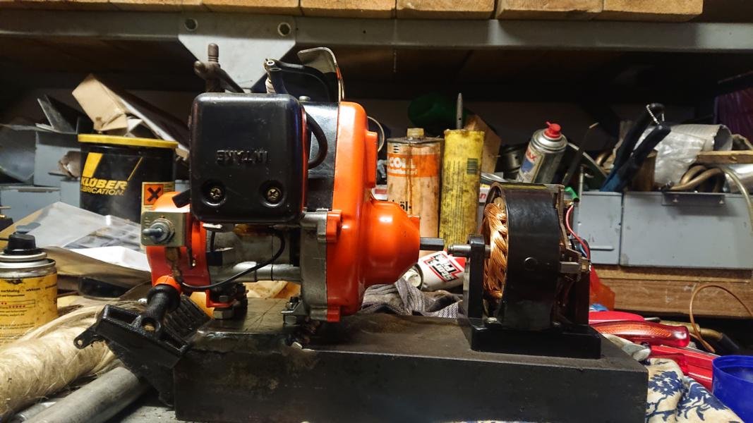 Mit dem Motorsensen Motor habe ich angefangen ein kleines Stromaggregat zu bauen. Den Motor habe ich auf stehenden Zylinder umgebaut. Den Generator habe ich schon vor längere Zeit günstig im Netz gefunden. Mfg.Max