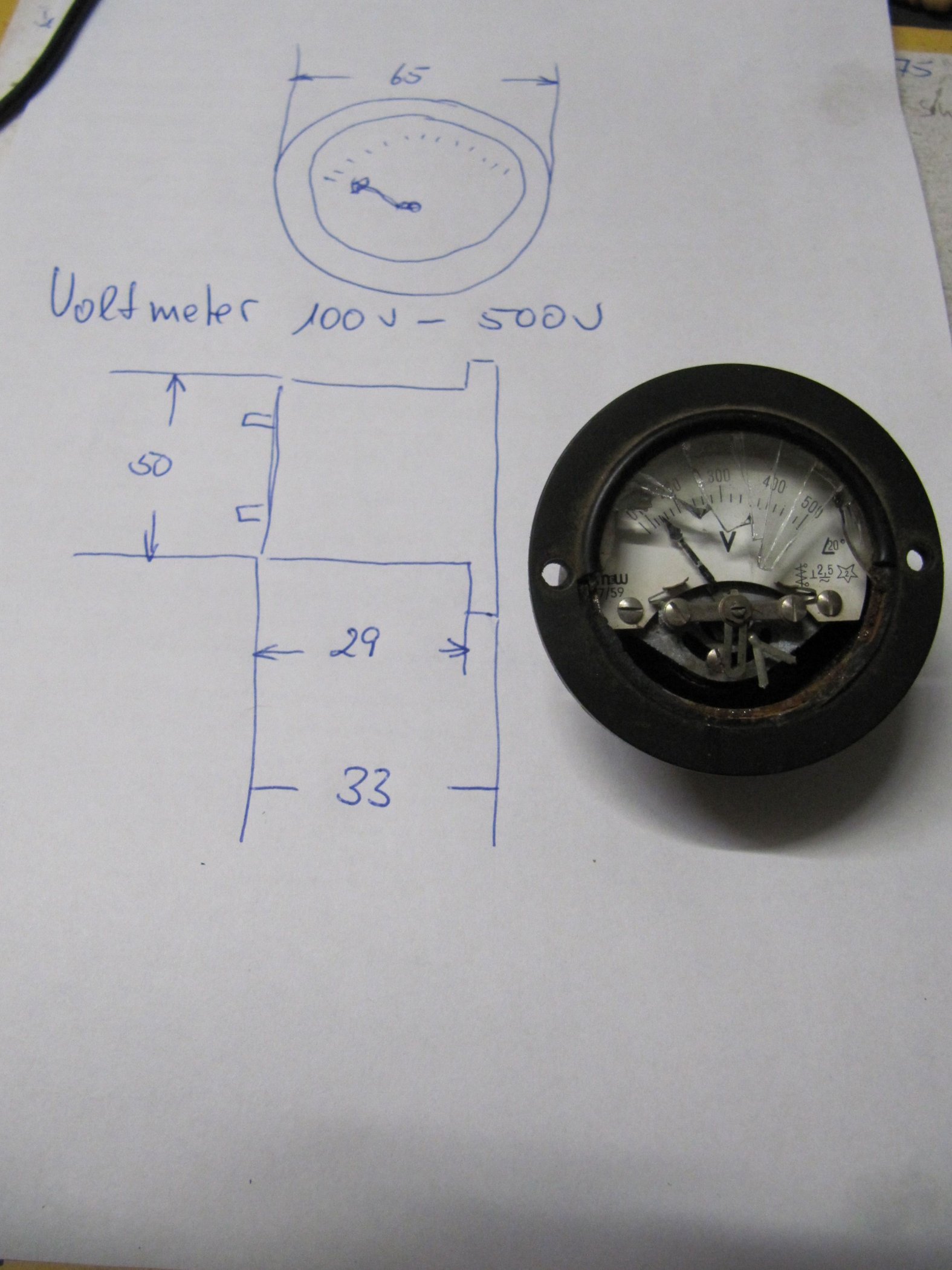 leider ist beim Voltmeter 100V--500Volt das Glas vorne defekt.