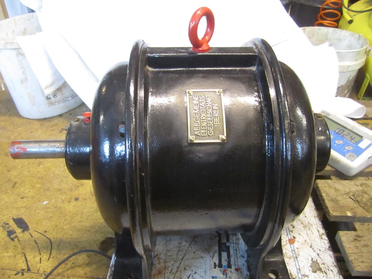Entwickelt wurde diese Art der Elektromaschine um 1882 von Nicola Tesla. Diese 5 PS starke und 102,4 Kilo Schwere Elektromaschine der AEG ist sehr schön mit Leistungsschild und extra Herstellerschild in Bronze .Die Maschine Funktioniert ist Elektrisch geprüft als Generator und auch als Motor.