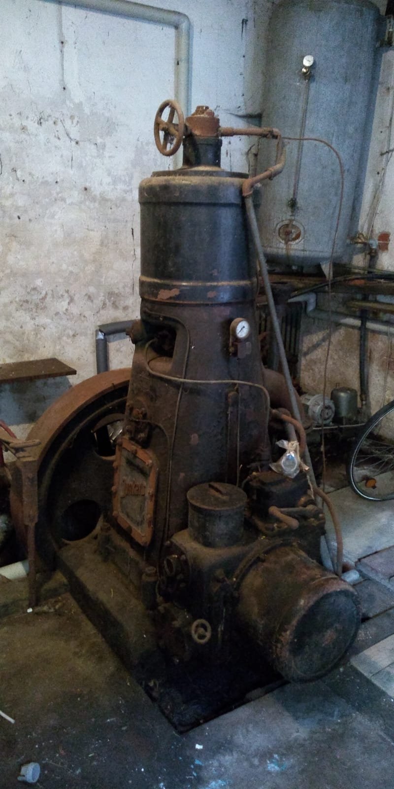 Werner und Daniel, besten Dank für euere Tipps. Das Schwungrad, Riemenscheibe und Welle haben wir bereits demontiert. (Super, nach fast 100 Jahren sind noch alle Schrauben gut gangbar.) Anheben kann ich diesen leider nicht, gibt die Örtlichkeit nicht her. Ich muss Ihn stehend oder liegend durch eine...
