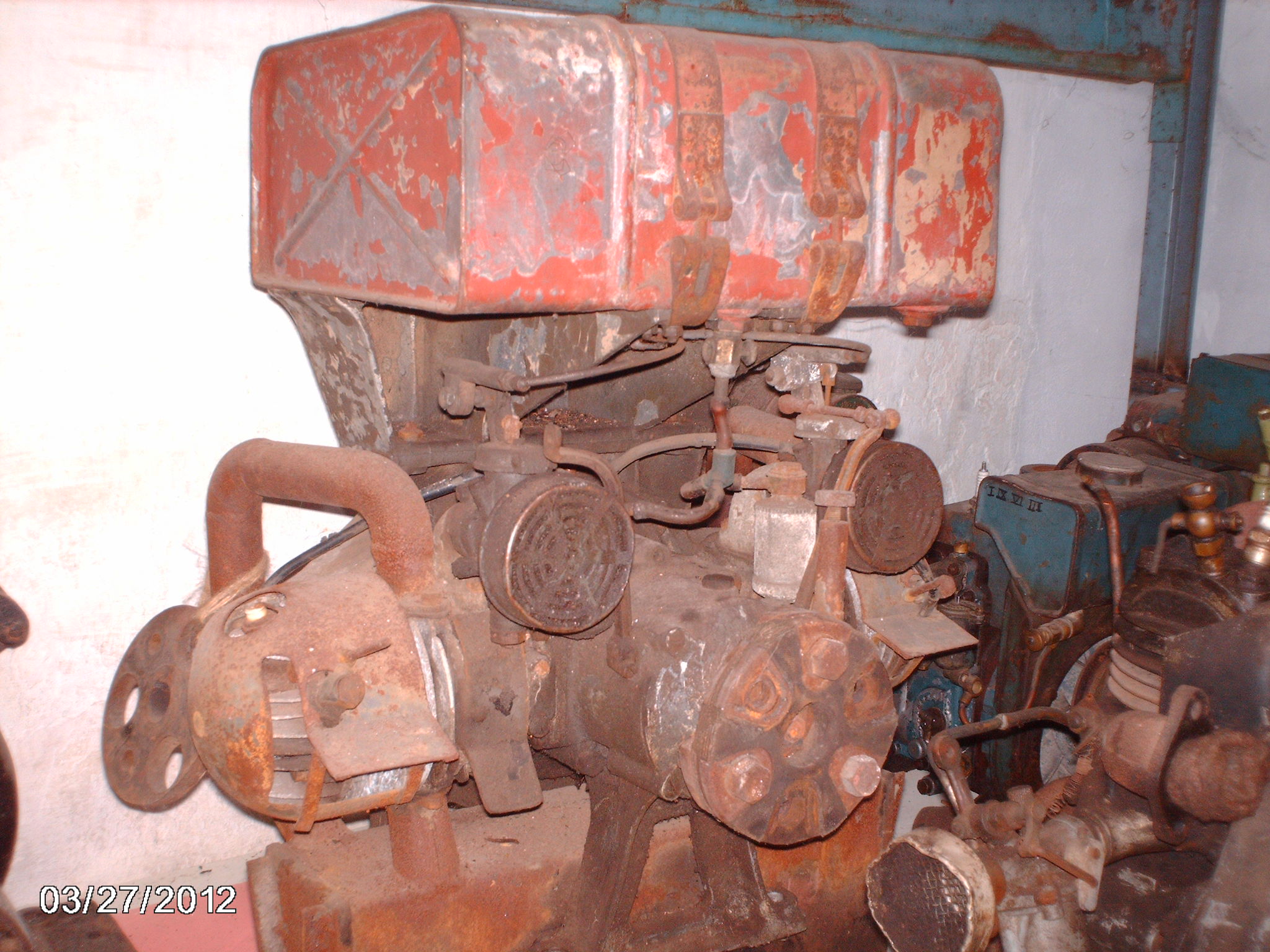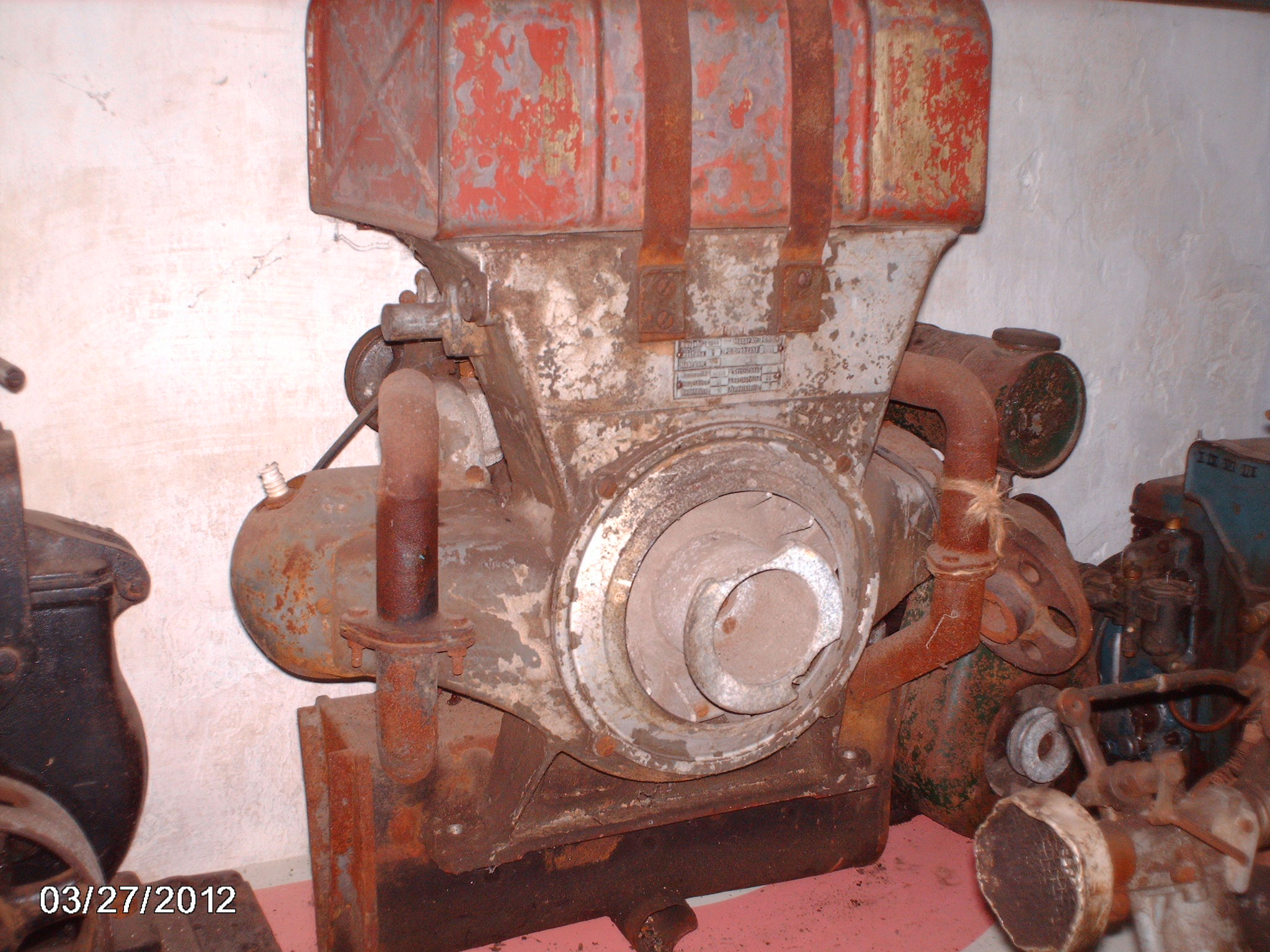 Hab hier einen unbekannten motor der mal an einem generator angebaut war und auf einen schlitten gestanden hat.