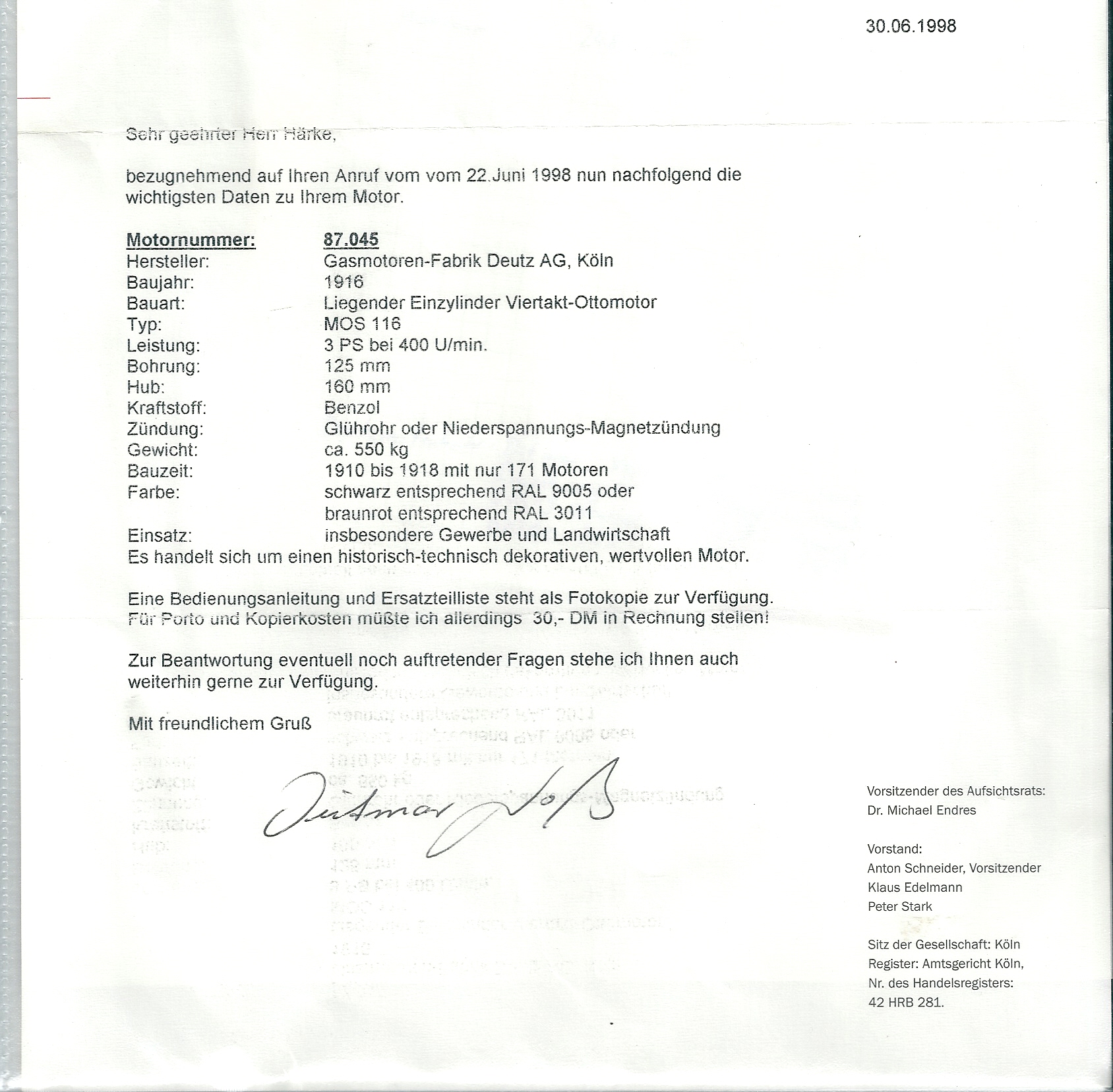 ich habe seit 1998 einen Deutz Mos 116 mit der Seriennummer 87.045.