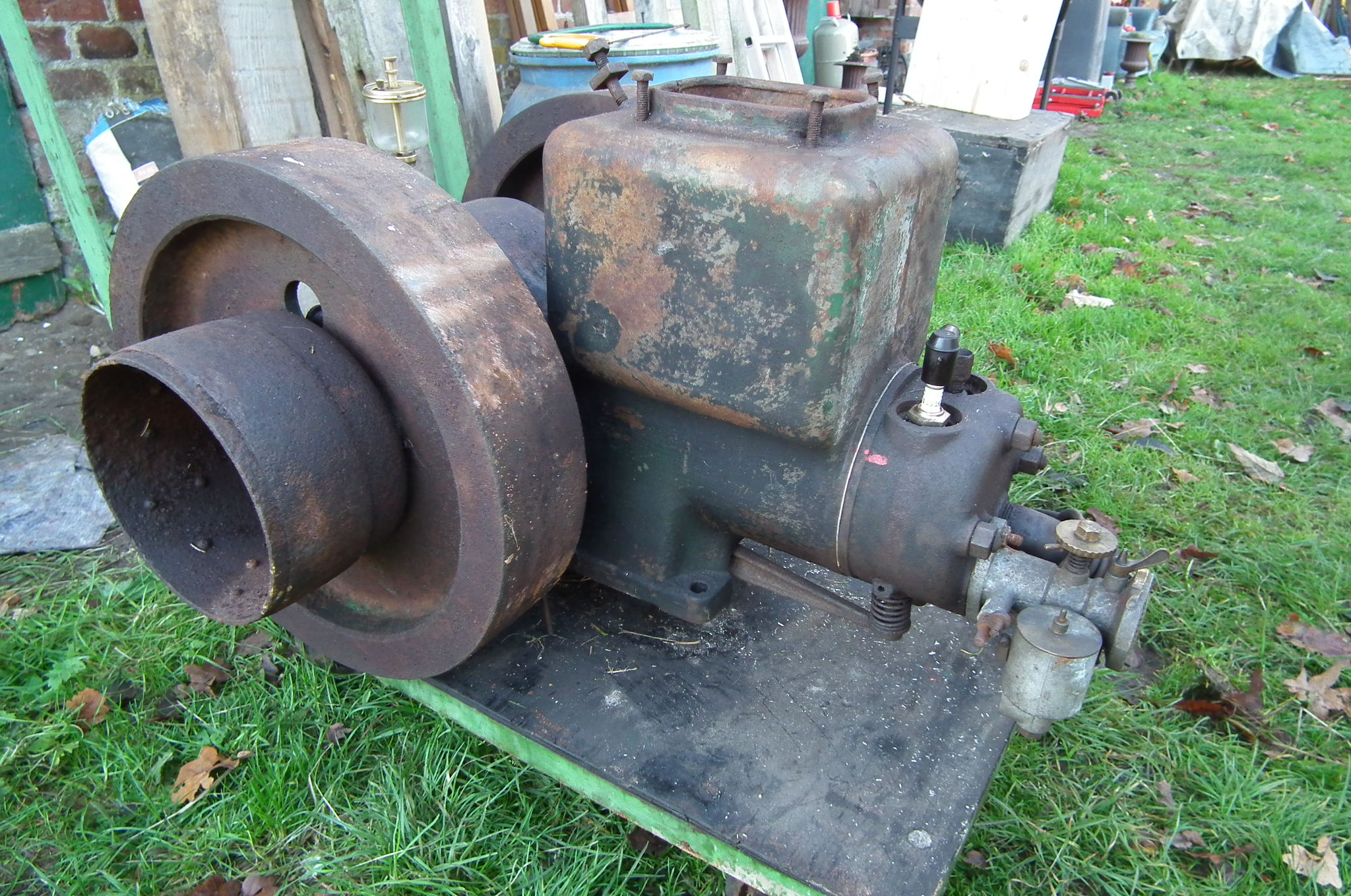 gestern ist mir wieder ein Motörchen übern Weg gelaufen, da habe ich in mitgenommen. Kann mir jemand etwas über den Typ und Baujahr sagen. Besonderheit, die Schwungräder im Durchmesser 41 cm und 9 cm breit (sehr sehr schwer) habe ich so noch nicht gesehen. Er befindet sich im originalen Zustand und ist ohne Frostriss.