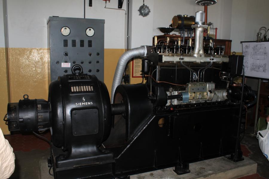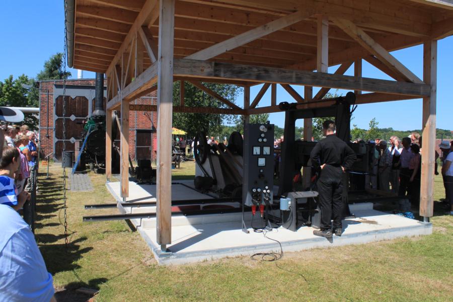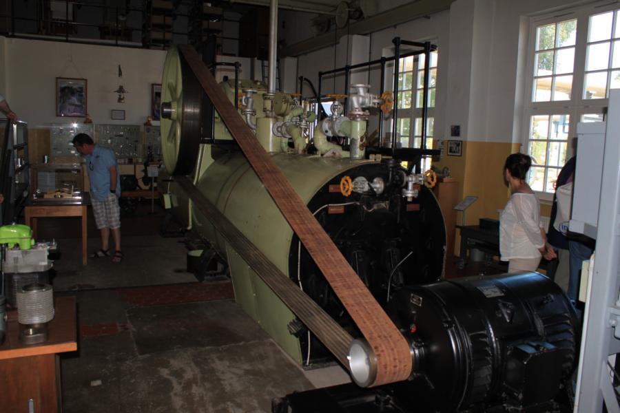 Hier treiben die Jungs mit einer Dampfmaschine einen Generator an. Dieser Generator treibt einen Elektromotor an und somit auch das Horizontale Sägegatter.