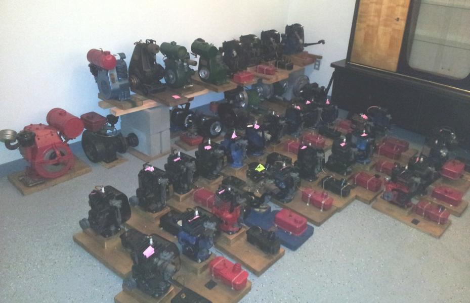 Nachdem ich ca. 6 Wochen schwanger gegangen bin, ist es jetzt passiert. Meine Familie hat Zuwachs bekommen. Ich habe von einem Sammler und Restaurator eine Briggs und Stratton Sammlung übernommen. Unter den über 70 Motoren sind auch verschiedene Maytags, Iron Horse, Continental, Sears, Clinton und Lausons dabei. Habe schnell mein Gästezimmer als vorrübergehende "Schlafgelegenheit" umfunktioniert.