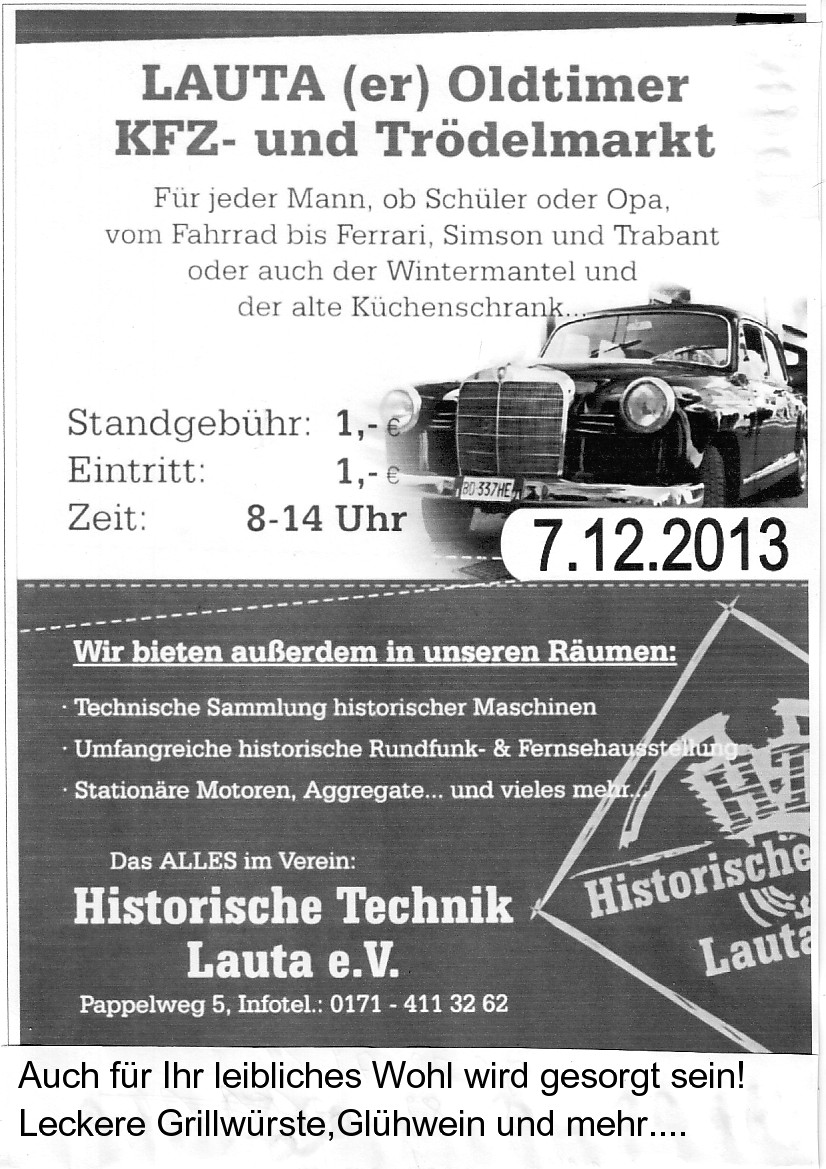 kleiner Weihnachtsoldtimertrödelmarkt am 7.12.13 in Lauta