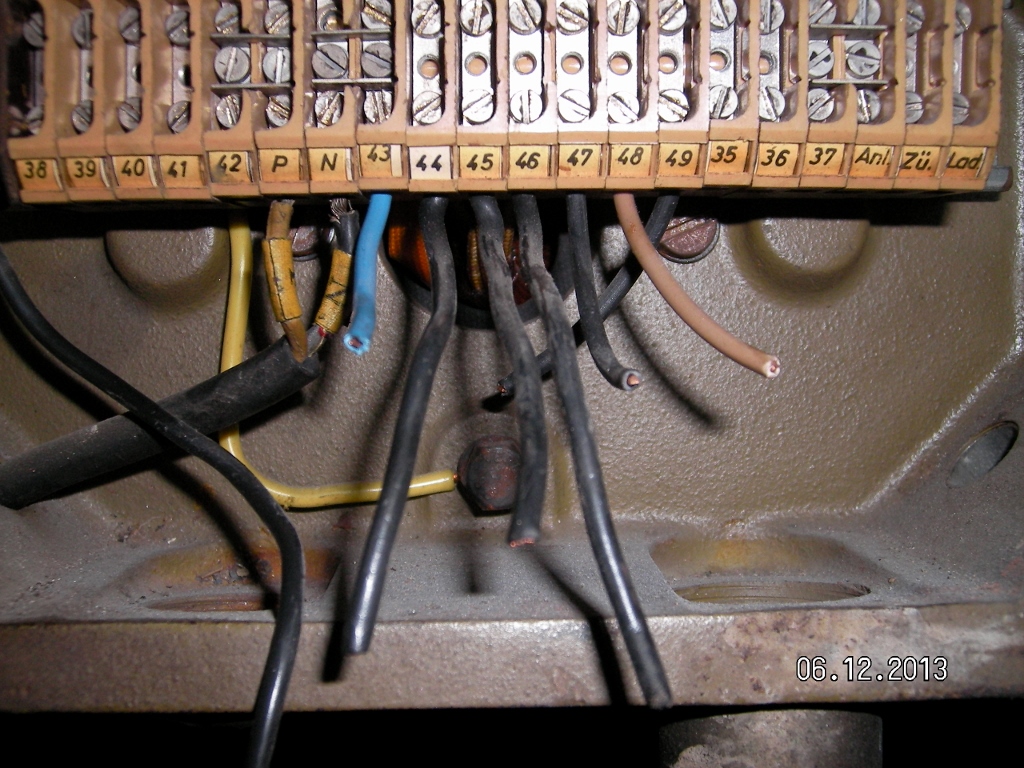 Die Kabel an N und P ganz links gehen zu der vom Verkäufer so bezeichneten Errergermaschine links am Motor.