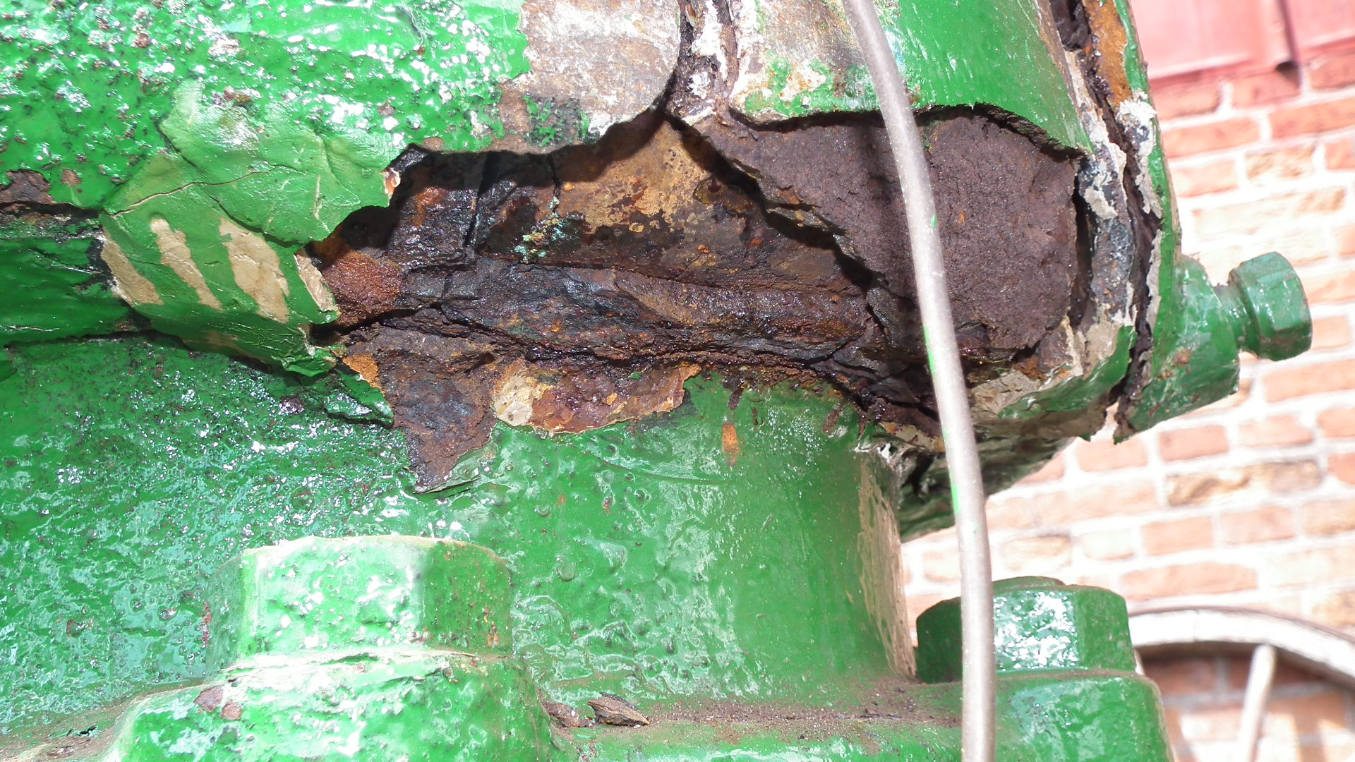 Der Motor ist frei und hat gute Kompression, alle Lager sind auch in Ordnung. Das einzige ist ein kleiner Frostschaden, dieser geht um den ganzen Zylinder und bis unter den Auspuffflansch. Das Material ist schlicht und einfach wech gerostet.