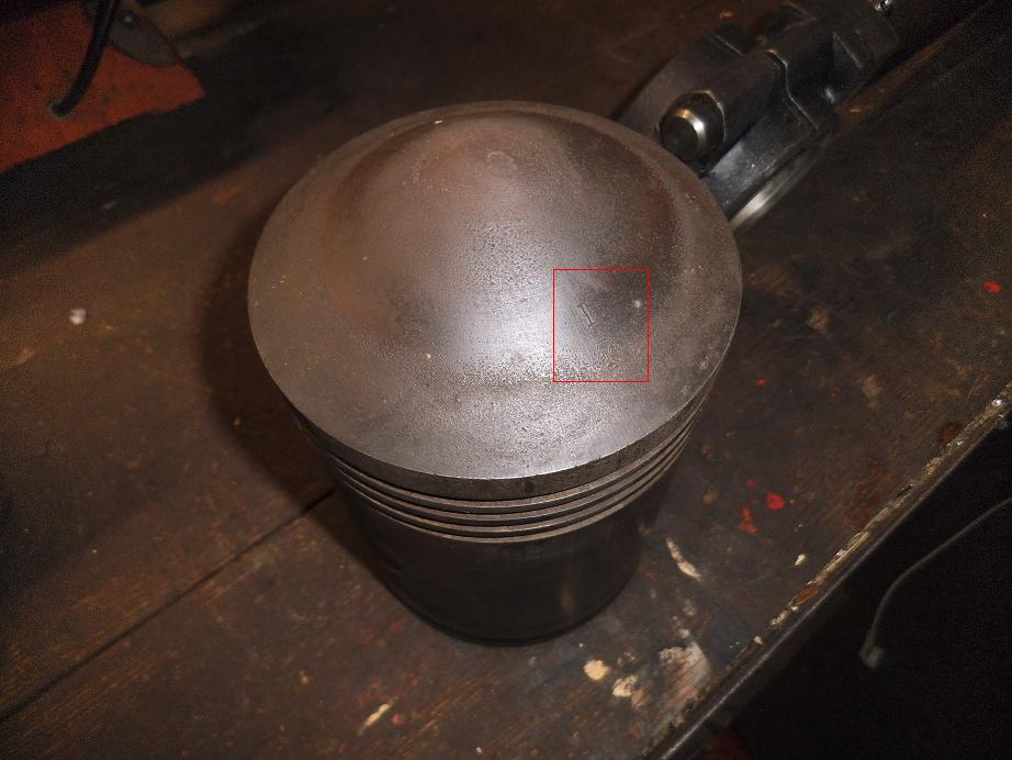 Die Kennzeichnung muss schon deswegen oben sein, da zum einen die Bohrung für die Kolbenbolzenschmierung sonst nach unten zeigen würde, zum anderen sie im eingebauten Zustand von unten nicht mehr so sichtbar wäre.