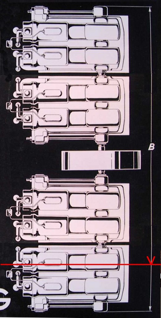 Auch mit zwei Vierzylindern ist der Motor noch zu lang. Ich kann mir aber nur schwer vorstellen, dass Deutz nur eine Steuerwelle je Vierzylinder hatte, Dann käme die Breite mit 12 Metern in etwa hin...