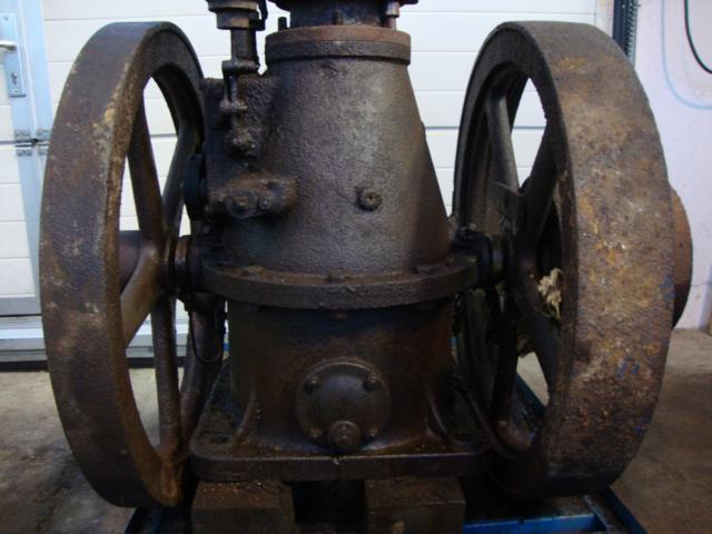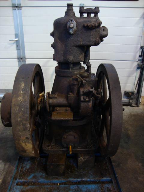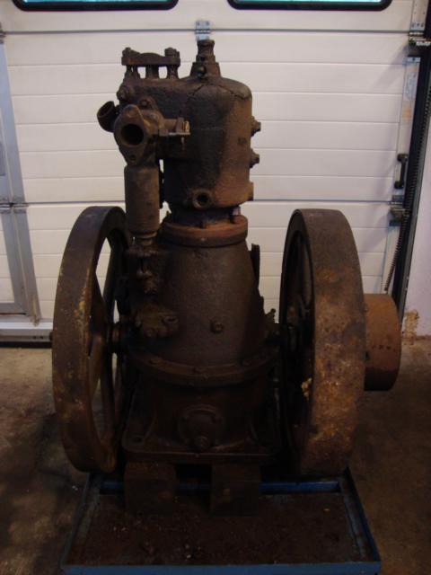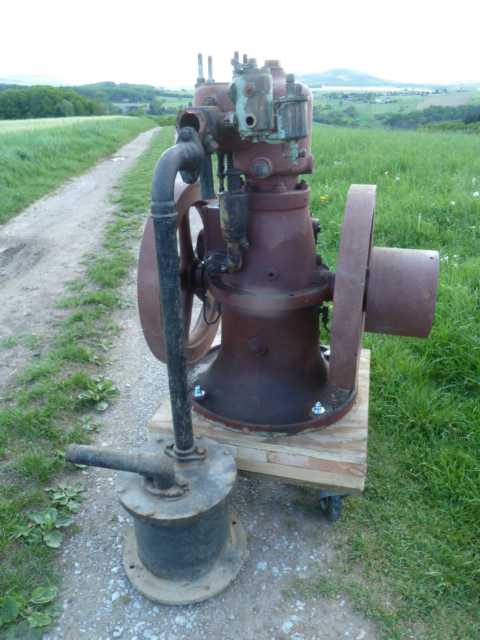 Es handelt sich um einen stehenden, wassergekühlten Benzin- oder Petroleummotor mit rundem Kurbelgehäuse, Sackzylinder und seitlich stehenden Ventilen.