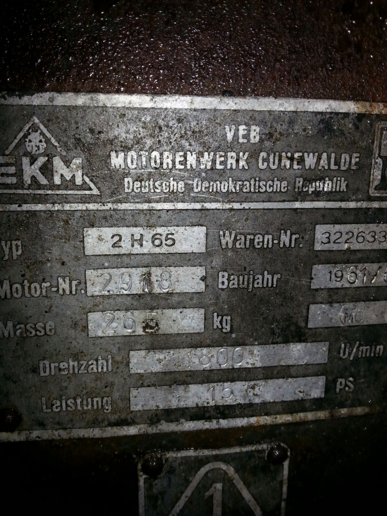 wir haben einen Motor Cunewalde 2 H 65 Baujahr 1961.