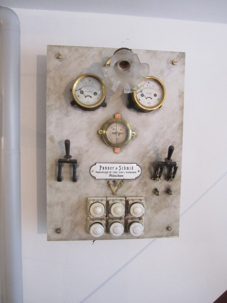 Das Ganze ist natürlich nur ein Vorschlag wie er am einfachsten und Gefahr losesten zu realisieren ist. Strom für Licht zu machen mit historischen Marmortafeln und offenen Messerschaltern.