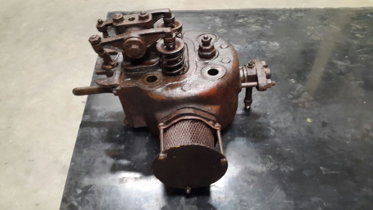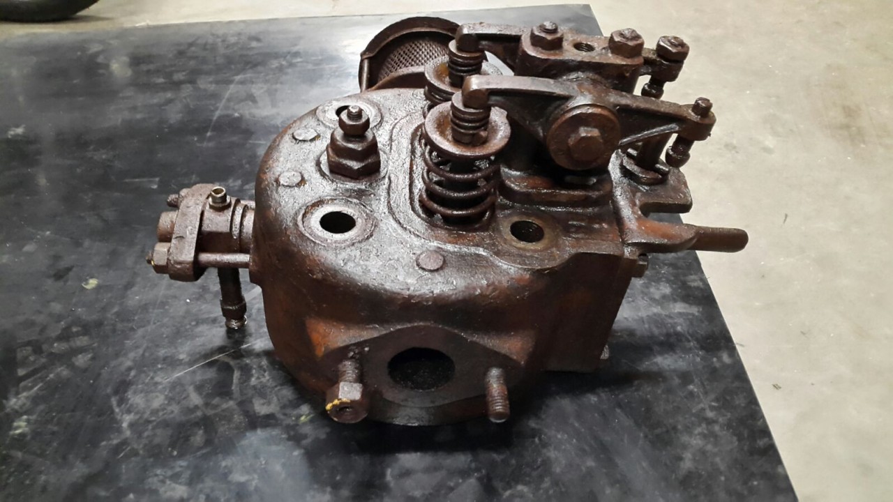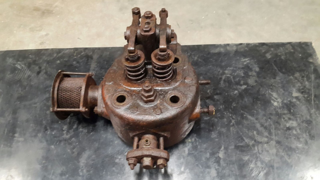 Der Zylinderkopf stammt von einem Jaehne LTH (7-9 PS), LRH (10-12 PS) oder LSH (13-15 PS). Der Auspuffanschluss ist beim LTH für 1 1/2" Rohre , beim LRH für 2". Vom LSH habe ich leider keine Maße.