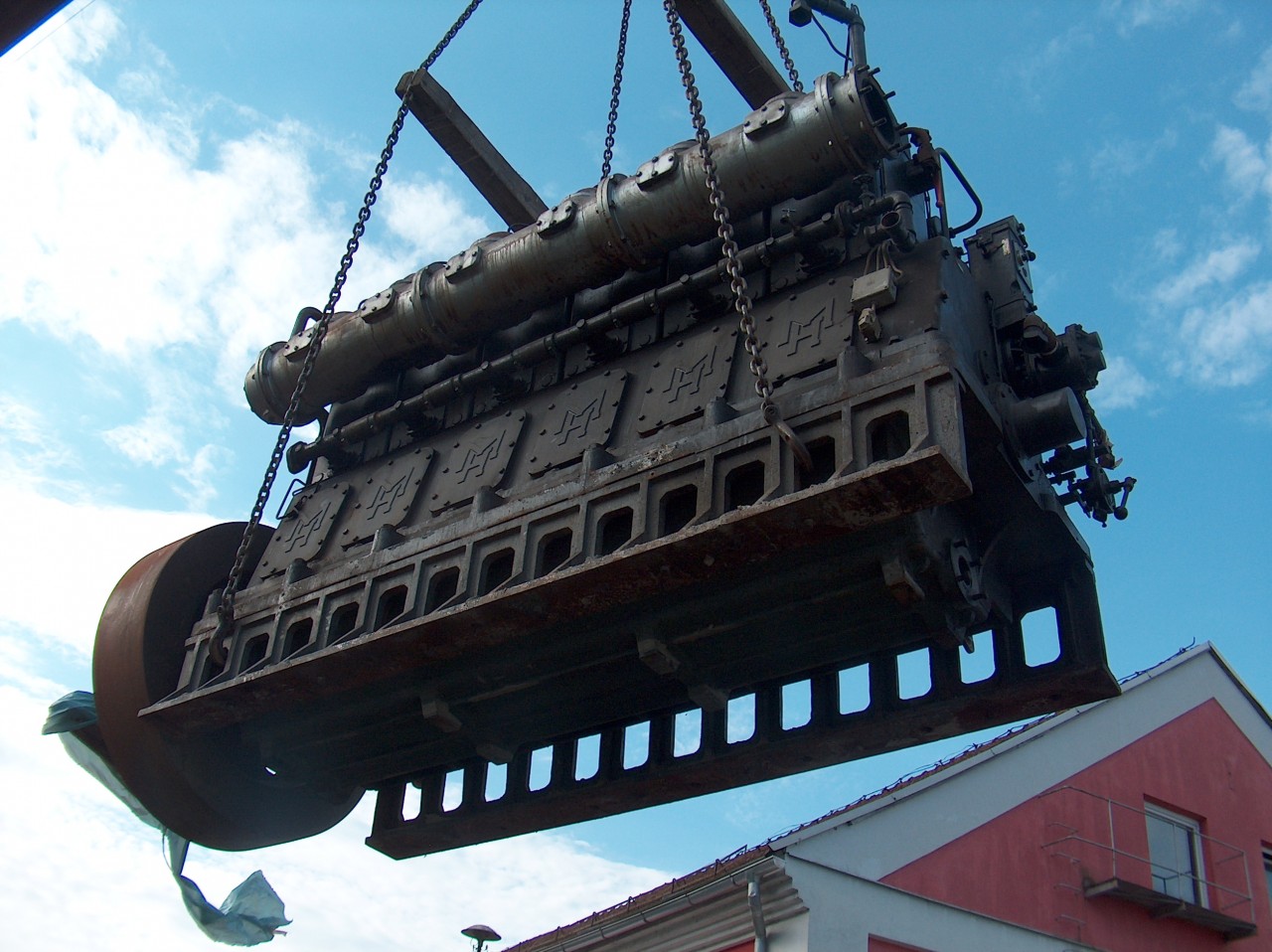 Die Anlage ist ausgebaut von ehemalige Textilfabrik wo es als eine alternative Quelle für elektrische Energie war( Fotos im Anhang).Jede zusätzliche Vorrichtung (Elektro-Steuerung-Schrank, 40 at Luftdruck Start-Behalter, 250 Liter Dieseltank für den anfänglichen Betrieb) Sie sind in intaktem Zustand(Nur 250 Betriebsstunden).Mit geringen Wartungsvorrichtung kann das Gerät mit unterschiedlichen Energenten wie Biodiesel, Pflanzenöl oder Abfallmineraloelle betrieben werden(Das Innere des Motors - Karter mit Kurbelwelle und Kolbenstange - foto 2708).Wenn Ihr Gerät in irgendeiner Weise interessiert, kann ich Ihnen liefern zusätzliche Informationen benötigt wird, wie preisguenstige LkW transport organisiert.