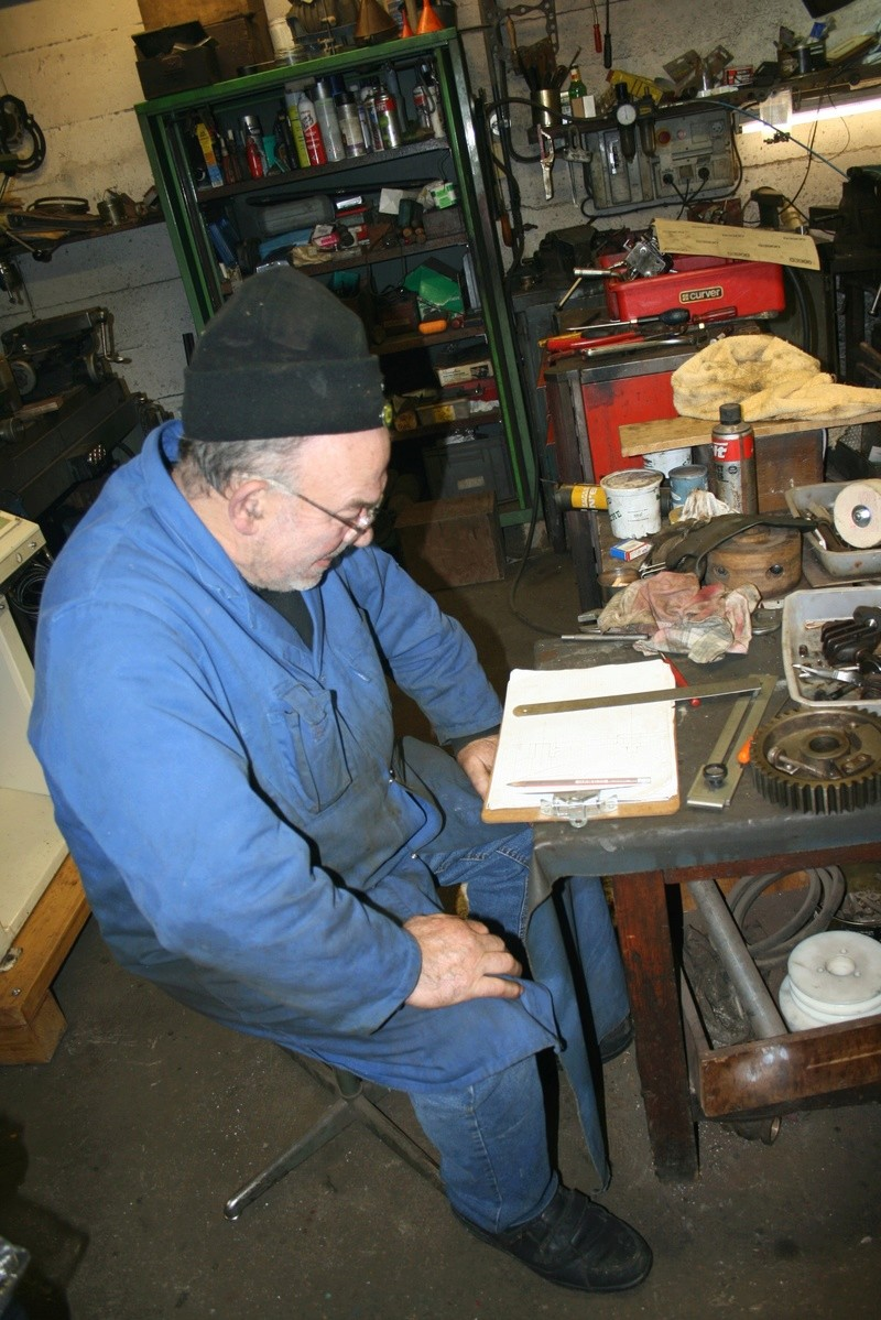 Heute geht es weiter mit diversen Nachfertigungen. Üblicherweise kümmert sich Jean-Pierre um die fehlenden Teile. Erstmal nachdenken: Dann entsteht eine Zeichnung: Als nächstes wird gefräst und gedreht. Die fertigen Einzelteile: