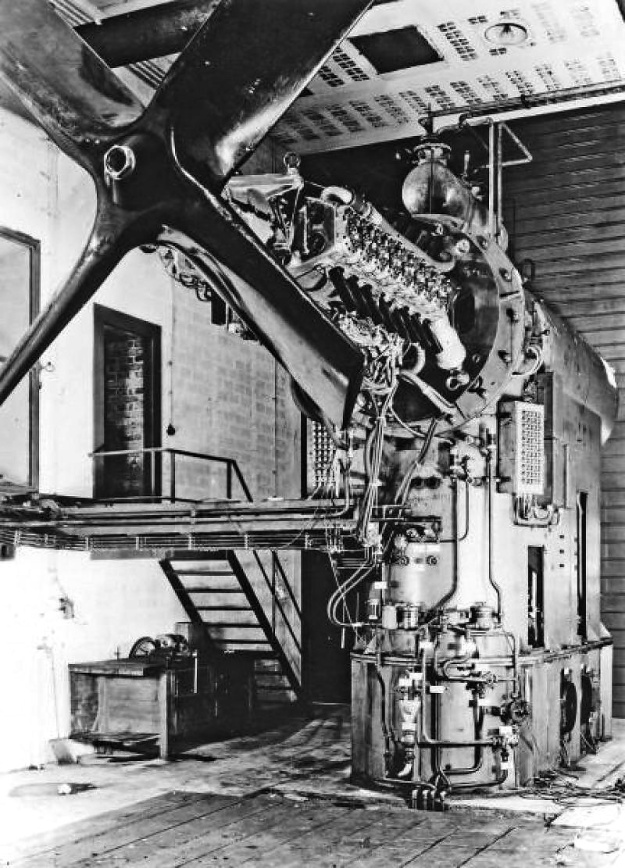 This is the opposed 16-cylinder KHD Dz 710 engine on a test stand in Oberursel,