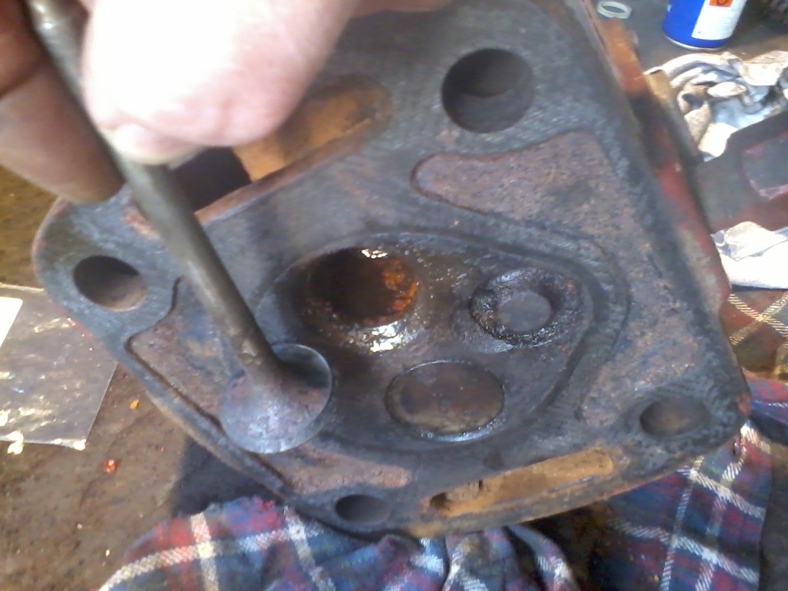 Das gute Stück ist tüchtig eingestaubt und dreht immerhin frei. In der nächsten Zeit werde ich mir einen Überblick über den Zustand machen und habe dann sicher etliche Fragen. Der Zylinderkopf braucht auf jeden Fall eine Kur, da die Ventile reichlich vergammelt sind und auch stecken. Dementsprechend hat der Motor keine Kompression.