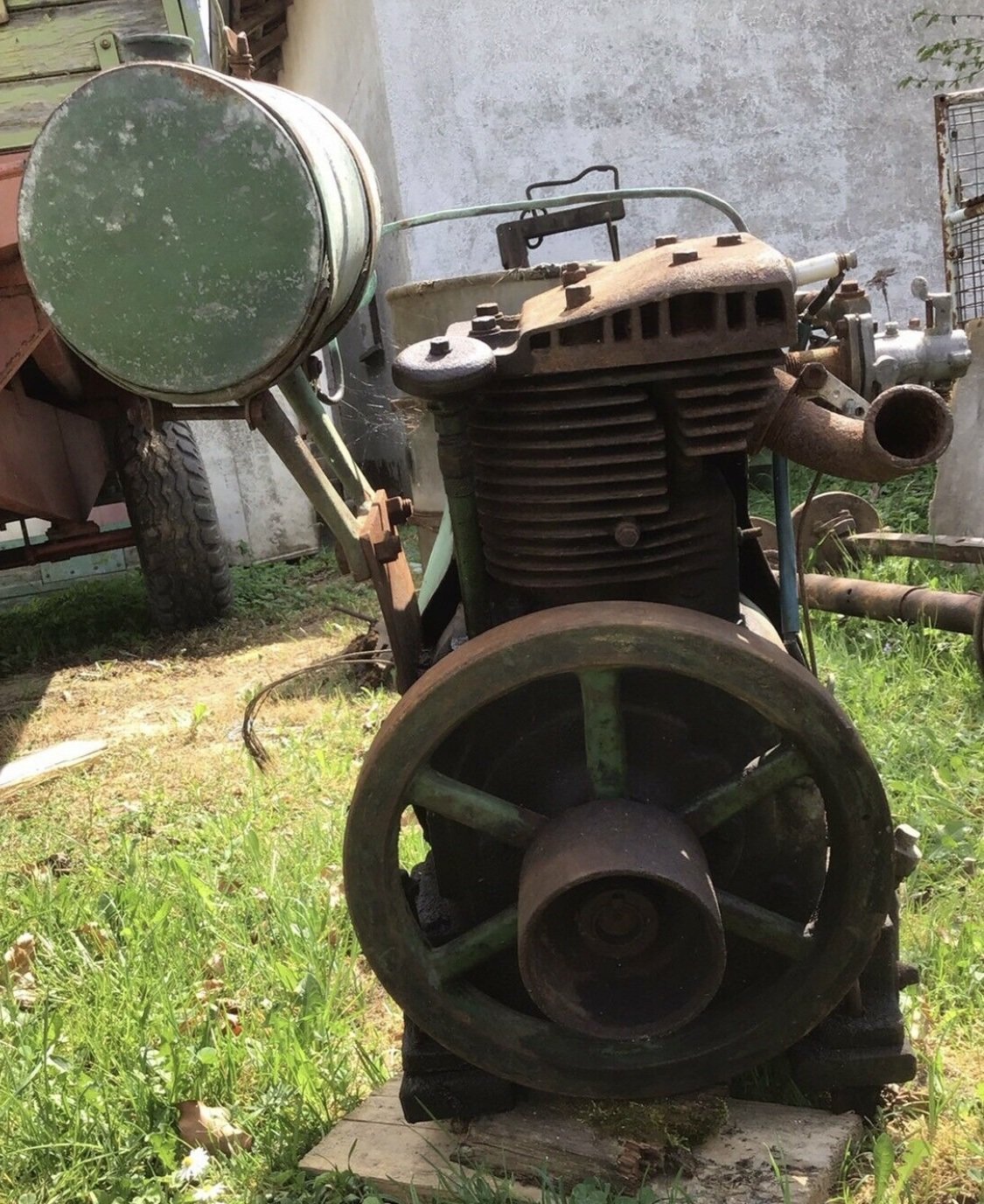 Die Bauform ,Zylinderkopf ,Regelgestänge,Motorensockel usw sind ähnlich Wisconsin air cooled. Jedoch ist das Luftleitblech wieder zu eckig,vielleicht nach gefertigt. Ob das Speichenschwungrad original ist ?? Wenn du die Schwungscheibe mit den "Luftschaufeln" abnimmst wäre dann eine Schwungradmagnetzündung verbaut!?