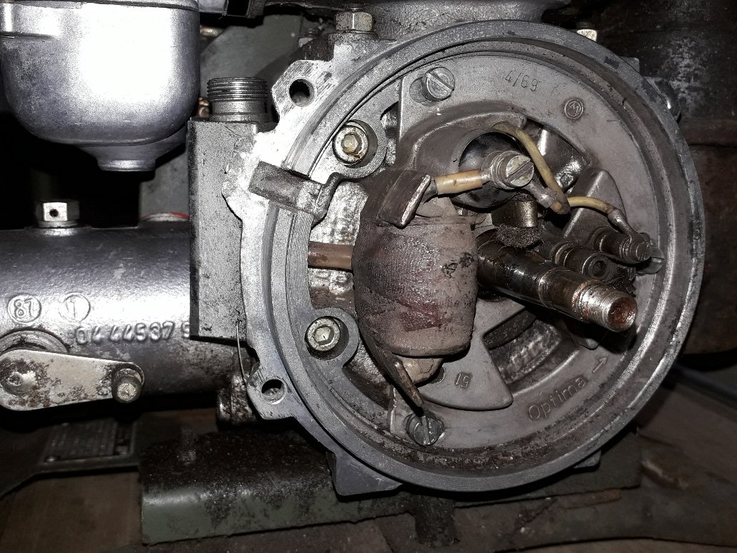 Die Zündung besteht aus der Zündspule ..aus der auch Dein Koxialkabel raus kommt, einem Kondensator (das Ding mit der 4er Schraube oben drauf (Zylinder und nicht Kasten) sowie dem Unterbrecher. Einen Transistor gibts da nicht, brauchst Du auch nicht.