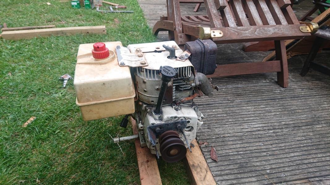 Ich habe mir ein günstiges Stromaggregat als Versuchsmotor gekauft und habe meinen ersten Strom aus Holz produziert.