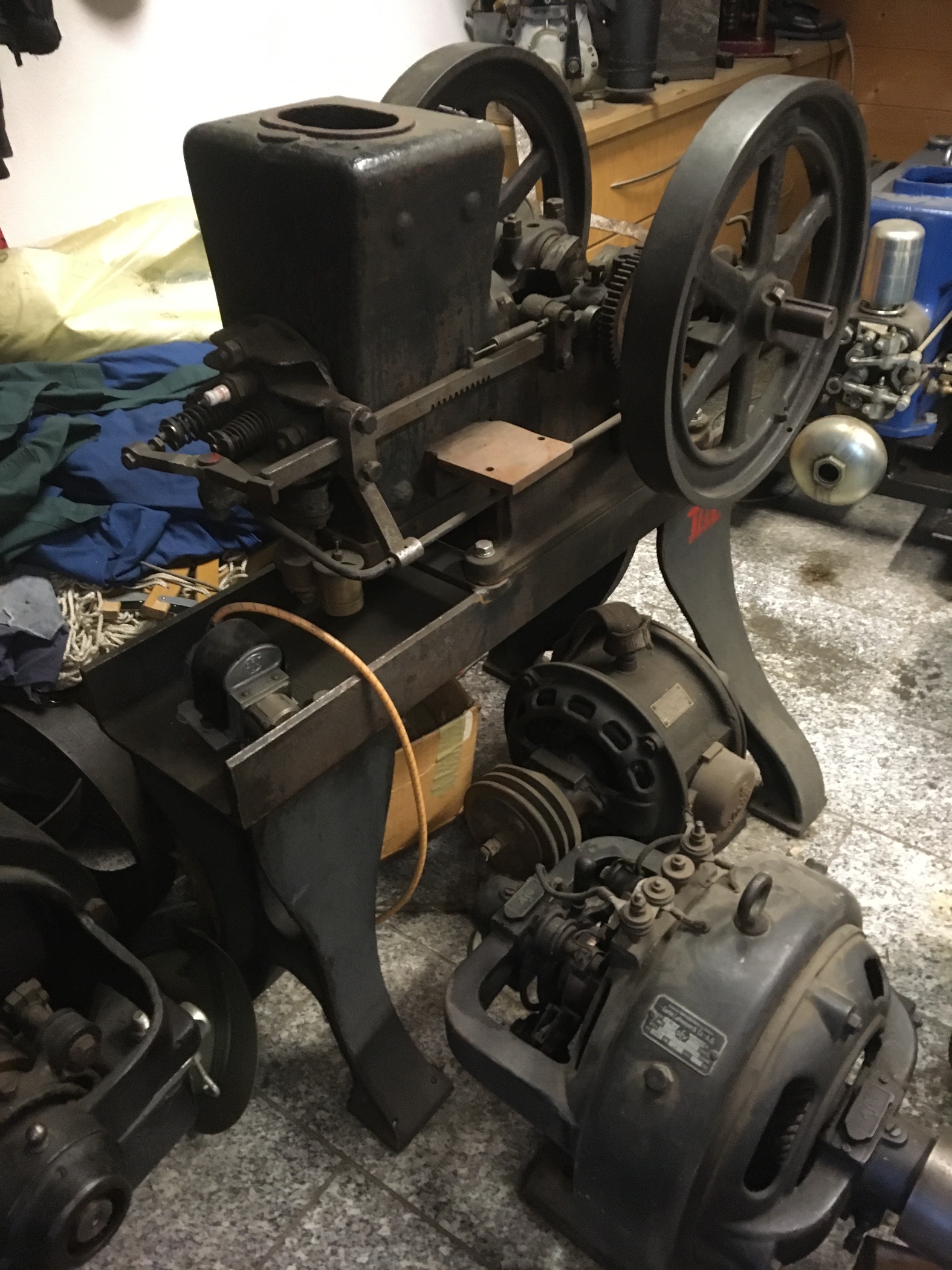 Meine Sammlung aus ca 30 Standmotoren unterschiedlichster Typen alle zeundungen gewickelt Einspritzpumpen und Düsen sowie lagerschalen neu gegossen. ebenso habe ich an die 100 Flachriemenscheiben unterschiedlichster Größen bis 1 m sowie Flachriemen dazu.