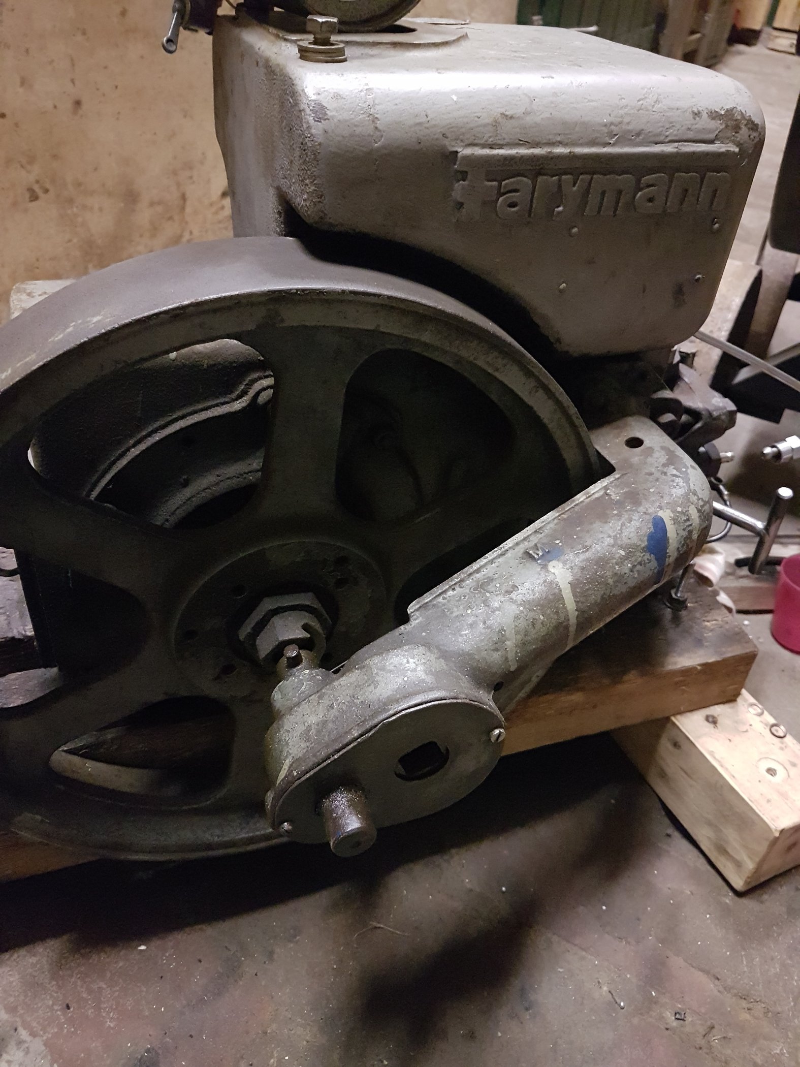 Versucht den Motor per Kurbel zu starten funktionierte nicht.Also den Hatz rausgeholt und damit den Farymann auf Touren gebracht.