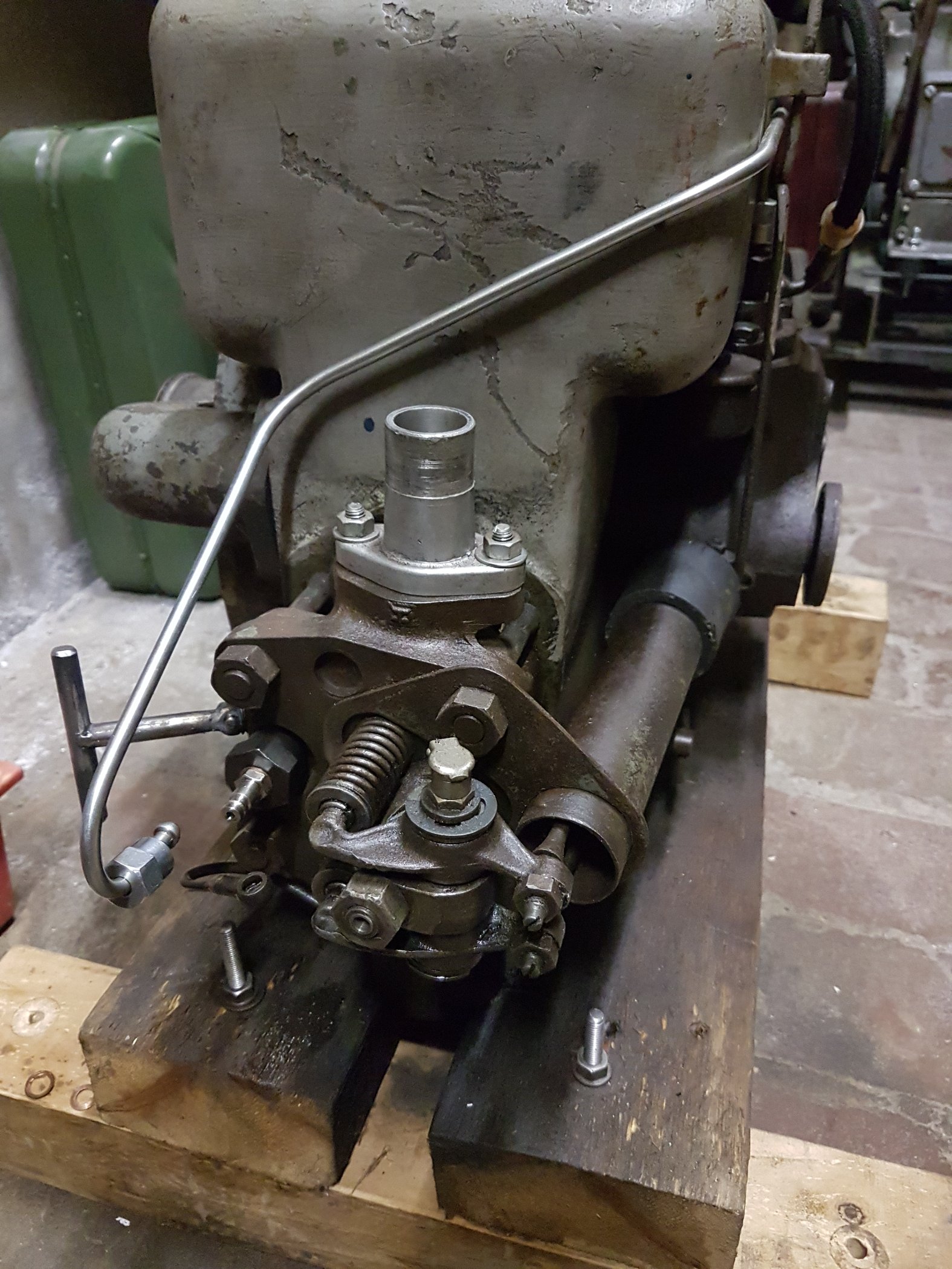 Er ist in einem guten Zustand.Die Einspritzpumpe ist wieder gängig und die Düse bekommt einen neuen Einsatz.Der Alte pinkelte anstatt zu zerstäuben.Den Luntenhalter musste ich auch neu anfertigen .