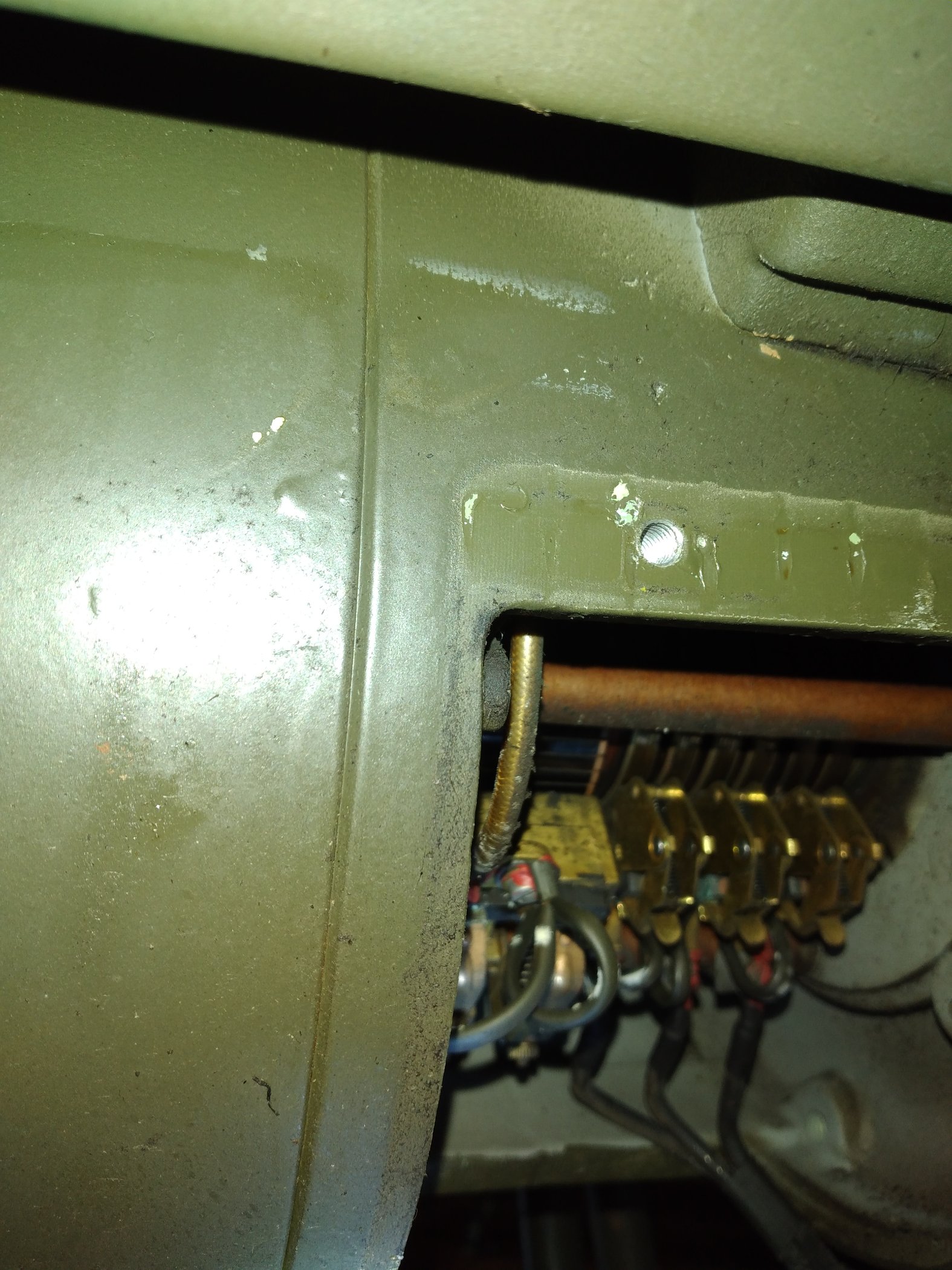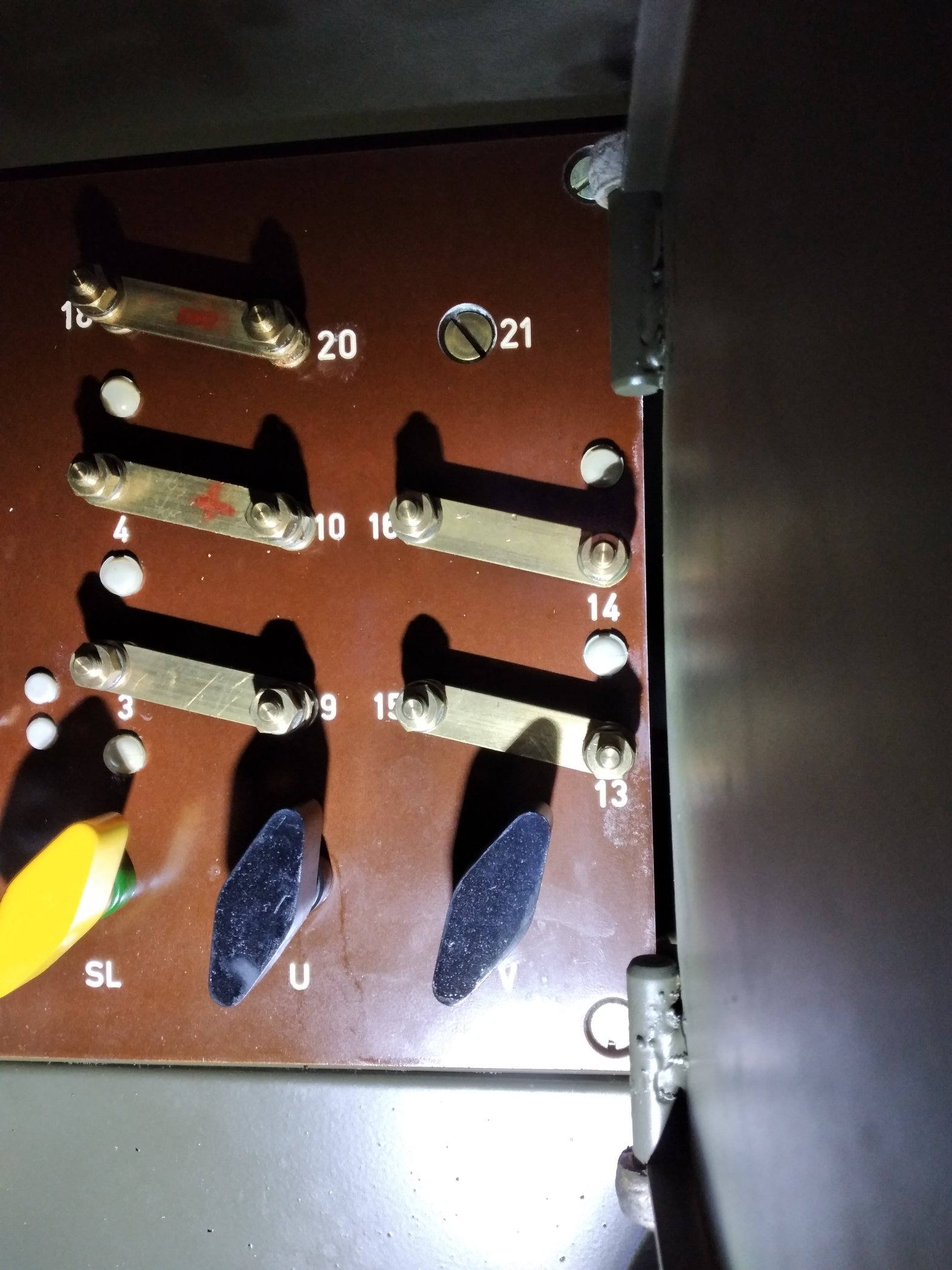 Welche der beiden Klemmen das waren und die Polarität vergesse ich immer wieder, deshalb habe ich es mir auf dem Schaltplan auf der Innenseite des rechteckigen Deckels (Bild darüber) markiert. Ich bin mir aber recht sicher, dass es unterhalb der Spulen die Klemmen 5 und 6 (von links gesehen) sind, beide haben schwarze Kabel an den Klemmen. Polarität weiß ich nicht mehr. Ist aber auch fast egal, schlimmstenfalls geht es halt nicht.