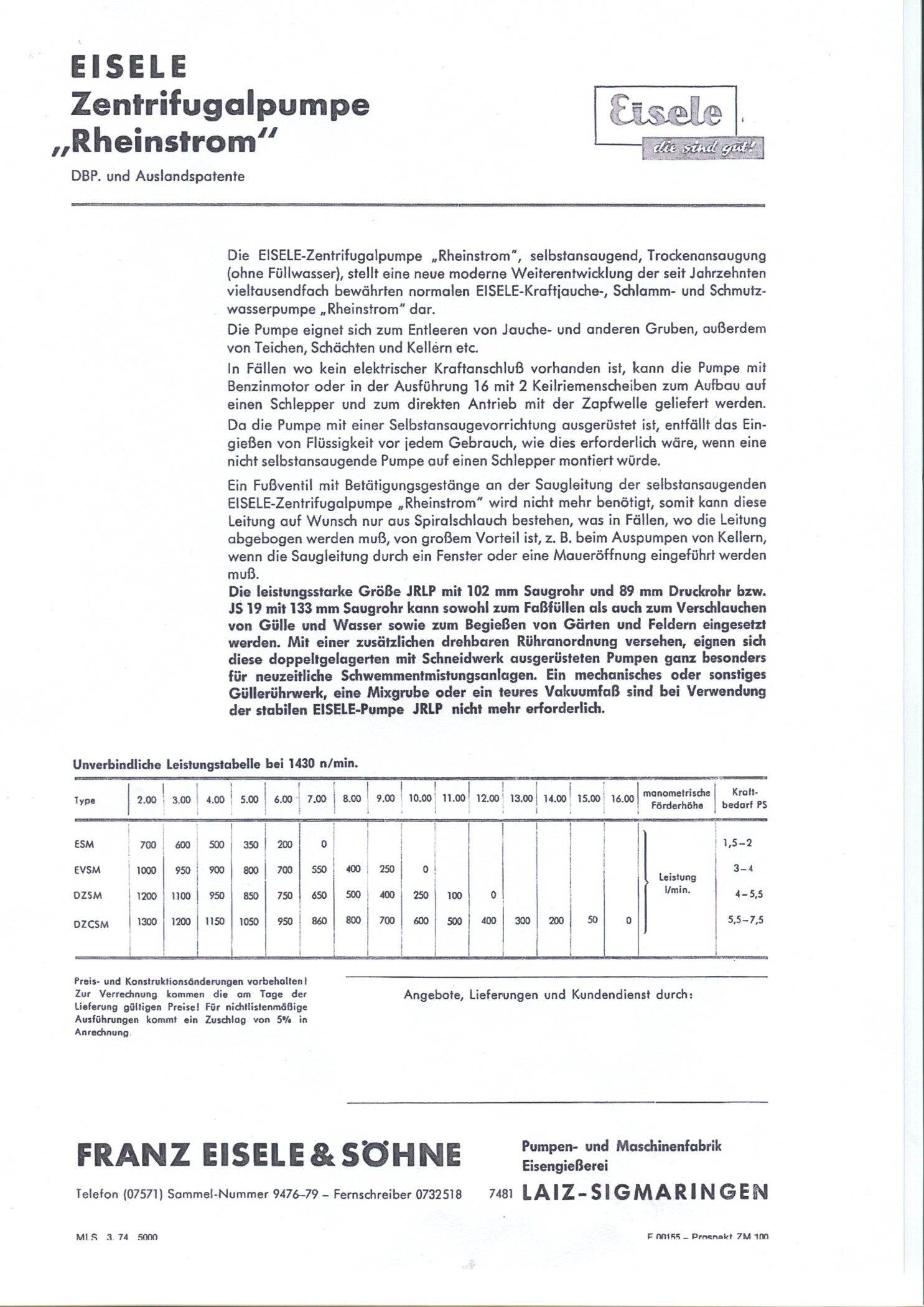Eisele Pumpe Typ Rheinstrom