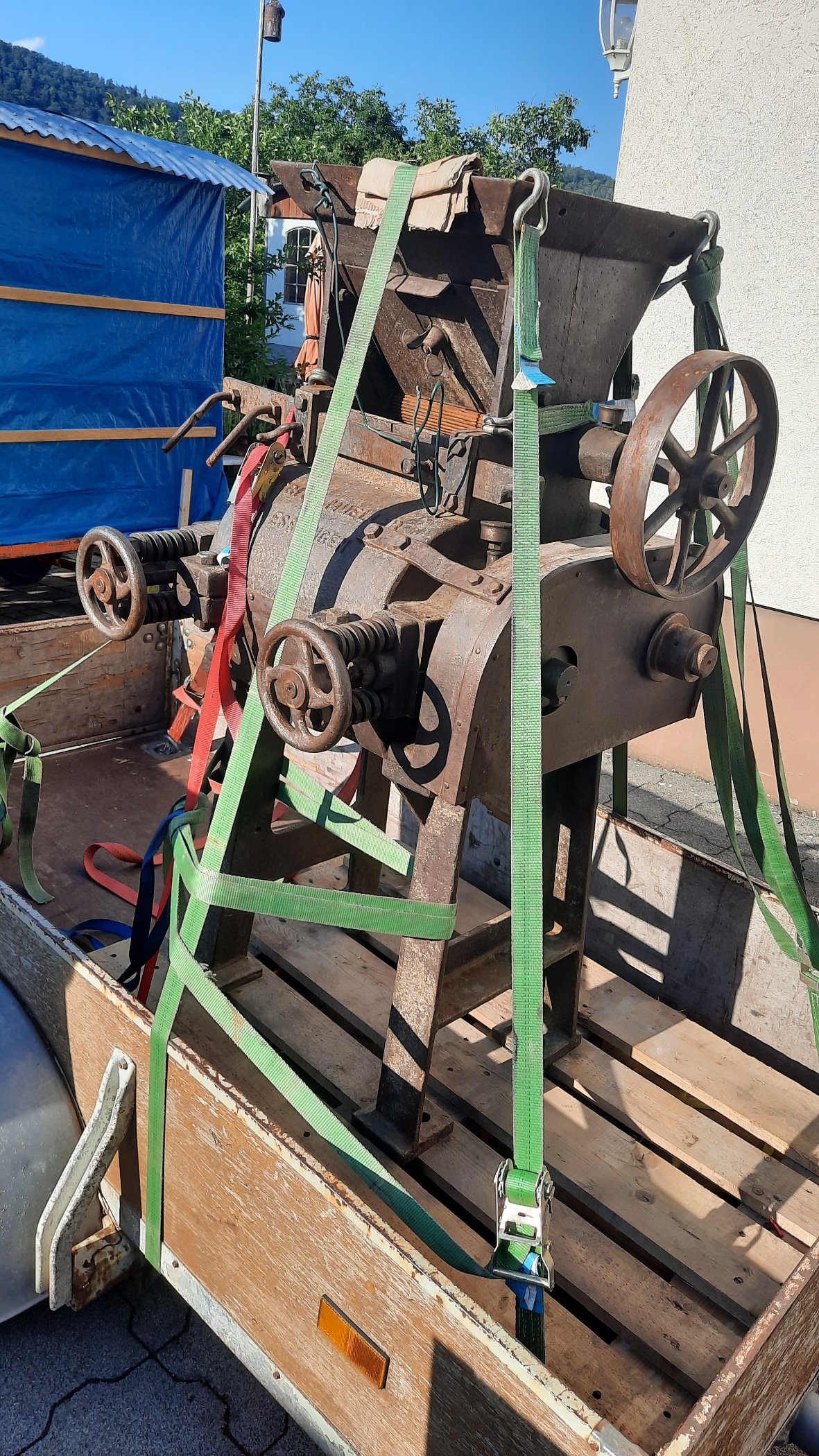 Beide Maschinen sind ausgebaut. Eine Verladung ist möglich. Es ist zu beachten, dass die Presse ungefähr 900 kg wiegt.