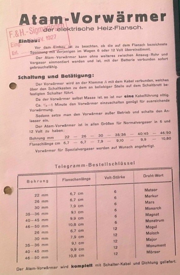wollte mal in Erfahrung bringen für was der "Atam" Vorwärmer eingesetzt wurde.
