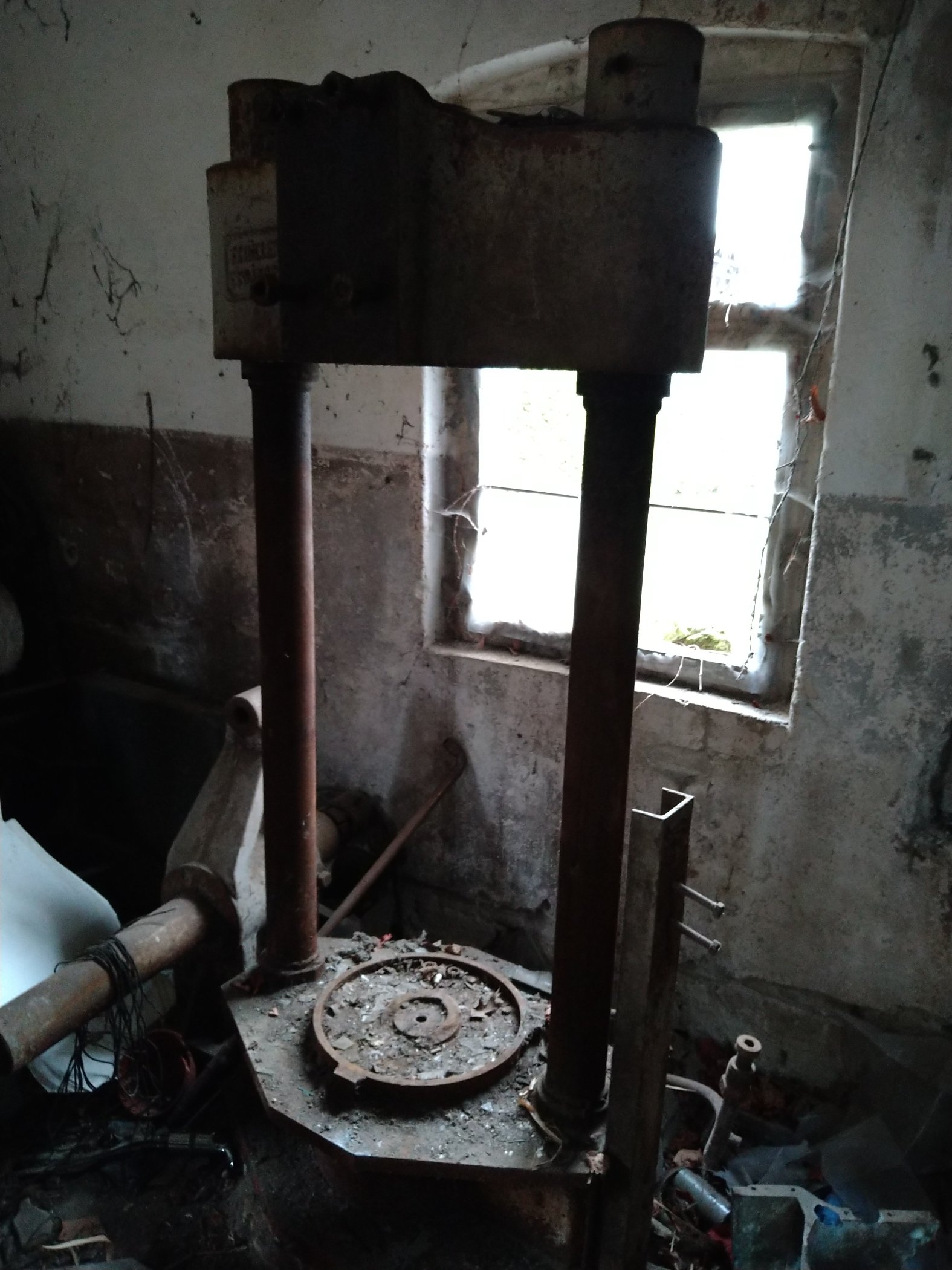 In der Ölmühle in Marbach steht diese Hydraulikpumpe.